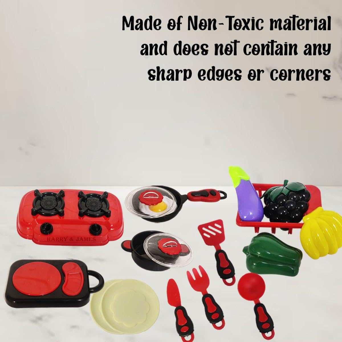HARRY & JAMES® 19 Pcs Portable Cooking Play Set Kitchen with Cookware Pots and Pans Cooking Utensils Cutting Vegetables & Fruits Pretend Role Play Toys Kitchen Set for Kids,Boys,Girls,Childrens