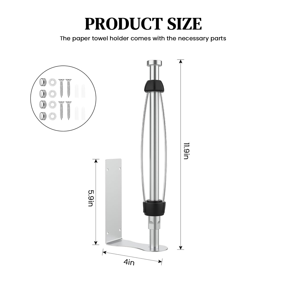 OPTIMAL SIZE FOR UNIVERSAL FIT: With its 11.8-inch bar design, this paper towel holder accommodates a wide variety of paper towel roll sizes, from standard to jumbo. Its universal fit ensures compatibility, while the thoughtful dimensions make it both practical and space-saving. Perfect for keeping your rolls organized and easily accessible in any setting.