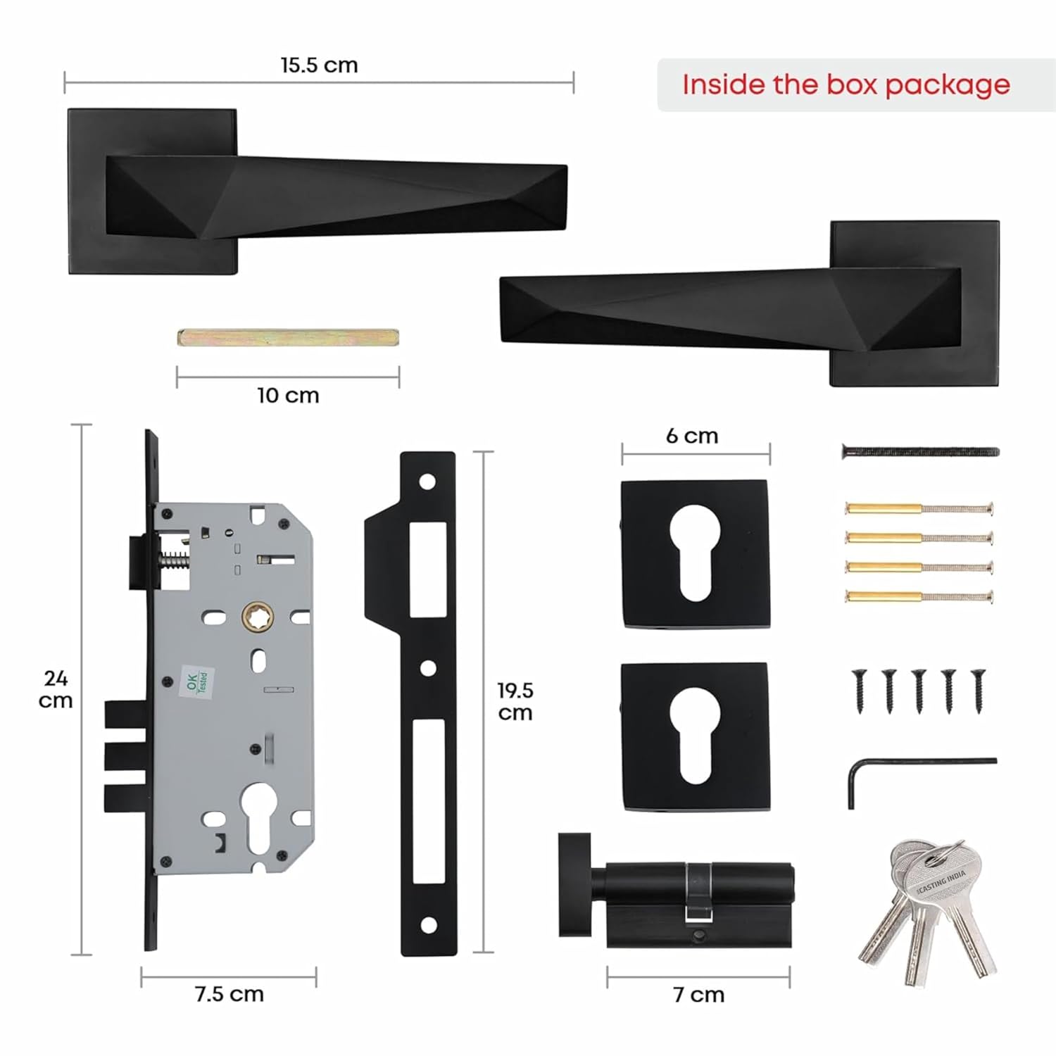 Fit and Forget: Assured help of 6 months for handles & cylinders as a warranty against manufacturing defects. This handle set is also tested for more than 300,000 cycles.