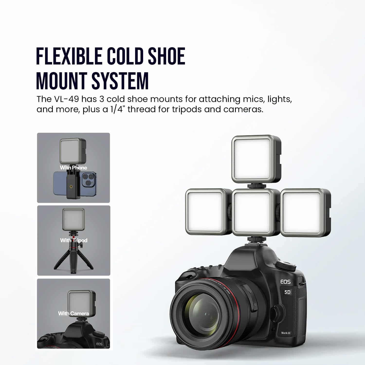 【8 Light Effect】The HIFFIN VL49 Also Has 8 Light Effects, Including Flash, Strobe, SOS, And Police. These Effects Can Be Used to Add Interest to Your Videos or Photos.