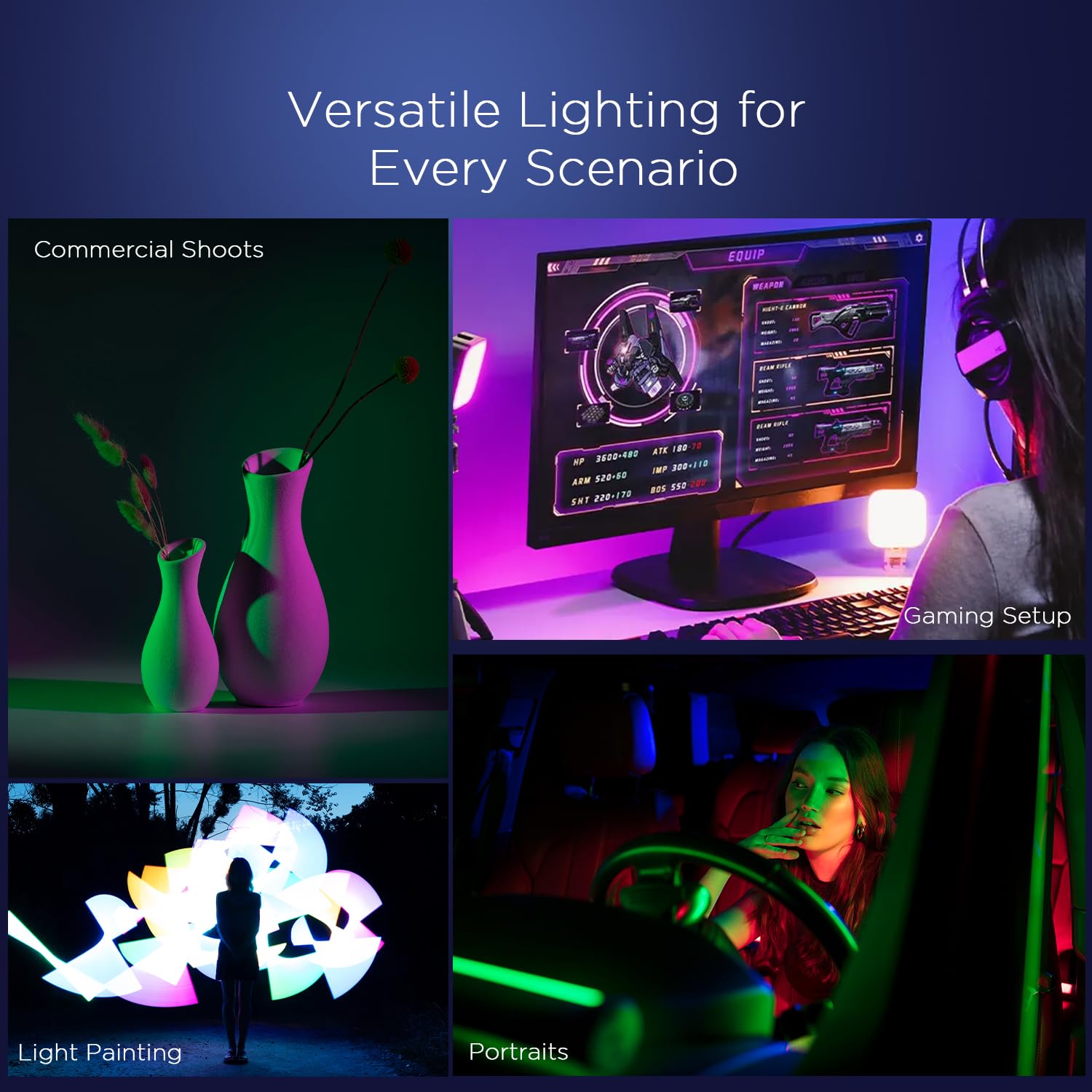 Offering full color control, adjustable brightness, and 360° illumination, this compact light is perfect for versatile shooting.