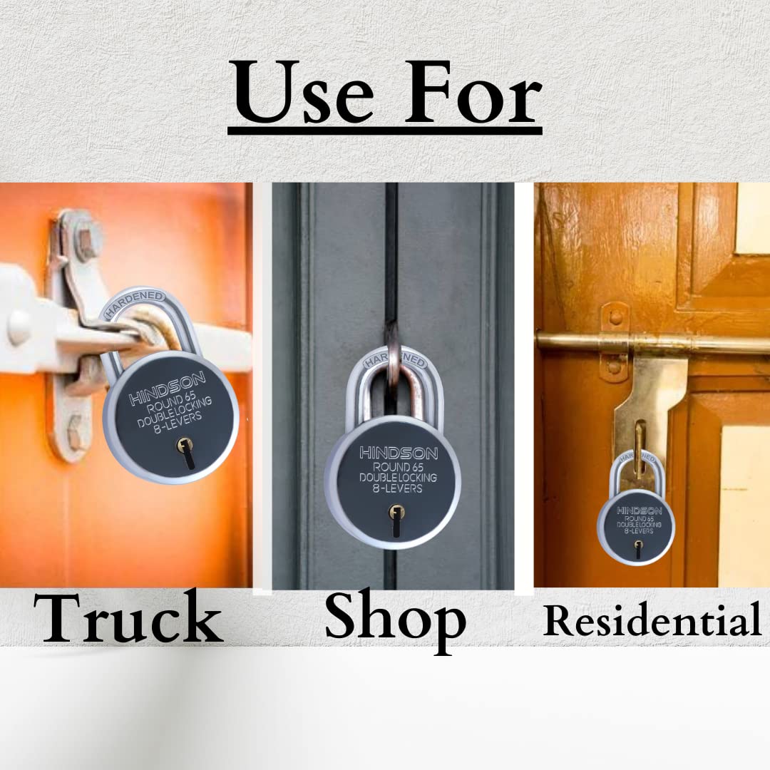 Versatile Applications The HINDSON India Round 65mm Lock is perfect for a wide range of applications. Use it as a door lock for your home, a gate lock for your property, a shutter lock for your shop, or a padlock for your storage units. Its versatile design makes it suitable for various security needs, providing a reliable solution wherever you need it.