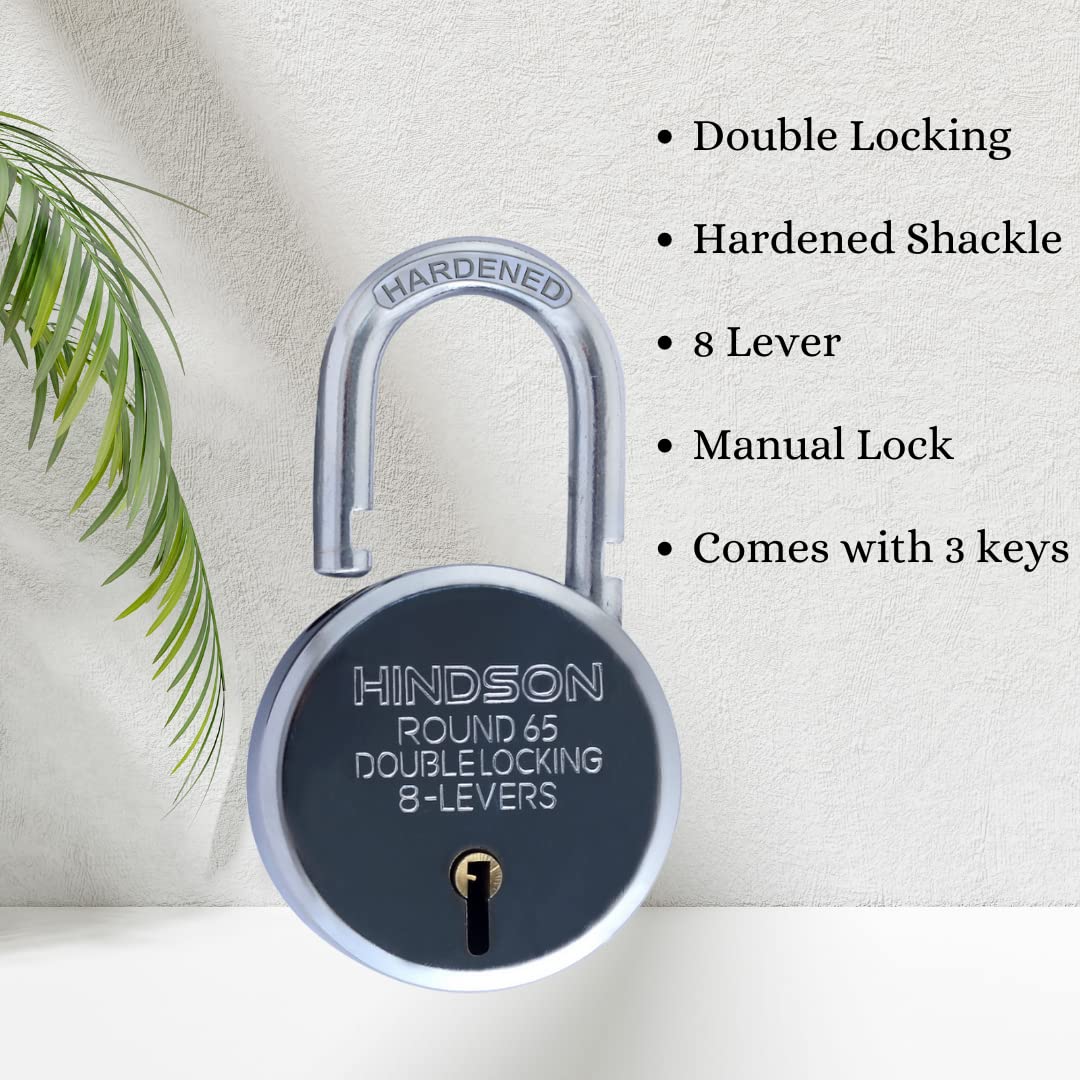Heavy Duty Shackle Padlock The HINDSON India Round 65mm Lock is engineered for exceptional durability and security. This heavy-duty shackle padlock features a solid metal body that is designed to withstand significant force, making it an ideal choice for securing high-value items and properties. Its robust construction ensures reliable protection against cutting and sawing attempts.
