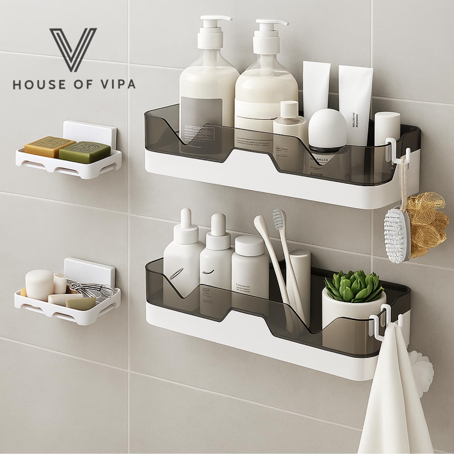HOUSE OF VIPA Multipurpose Bathroom & Kitchen Organizer Stand | Plastic Storage Shelf for Toiletries, Utensils | Wall Shelf Alternative for Small Spaces