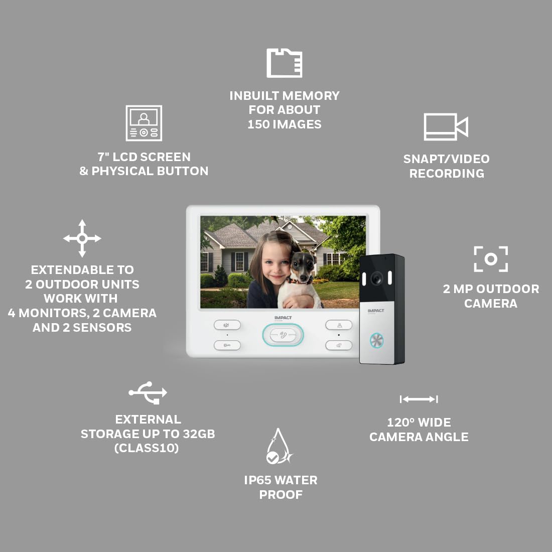 7″ LCD SCREEN & PHYSICAL BUTTON : – IMPACT by Honeywell Video Door Phone systems comes with 7 inch LCD screen with memory recording. Screen resolution of 1024×600 pixel, image is very clear from the display screen, when someone visits you, you can see visitor’s appearance clearly.