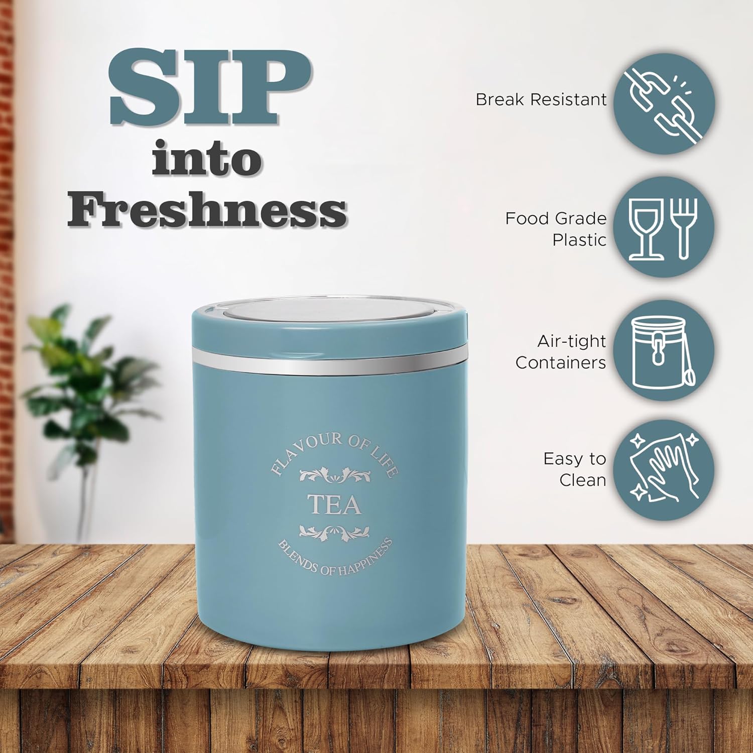 Airtight container- The taste and nutritive value of the contents remains intact for a long time making the containers very appropriate for storing tea, coffee & sugar.