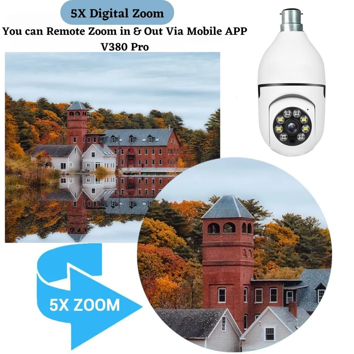 Easy Installation: Designed to fit into standard light bulb sockets, making installation straightforward without the need for additional wiring.Alarm and Alerts: Can send push notifications or alerts to your phone if unusual activity is detected.