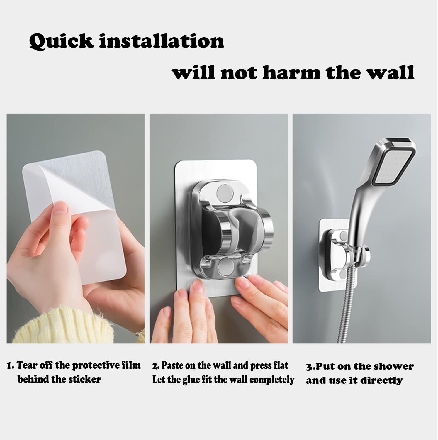 3. CONVENIENT INSTALLATION: The shower holder for shower head does not require nails, screws, drilling, glue, and wall damage. Just wipe the wall clean, tear off the protective film, keep the arrow icon up and stick it on the wall, squeeze out the air inside, and use the shower bracket directly.
