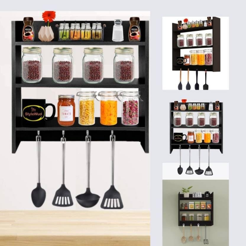 MULTIFUNCTIONAL KITCHEN STORAGE RACK Suitable for corner shelves, showcases, kitchen shelves, bathroom shelves, storage shelves, book shelves and wall shelves. Highly adaptable and multifunctional. This wall shelf may also be used in your living room, study, and workplace in addition to the kitchen. STYLISH SOLUTION Your necessary kitchen appliances no longer need to be stacked in cupboards. With the help of these wall-mounted kitchen shelving units and storage options, you can store everything you need within easy reach while also adorning your kitchen’s walls with a lovely array of vibrant cooking utensils.