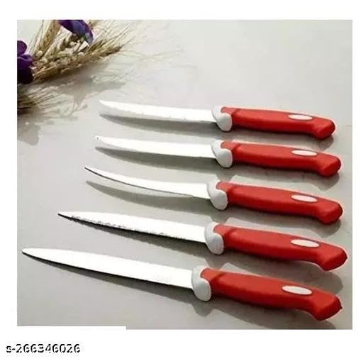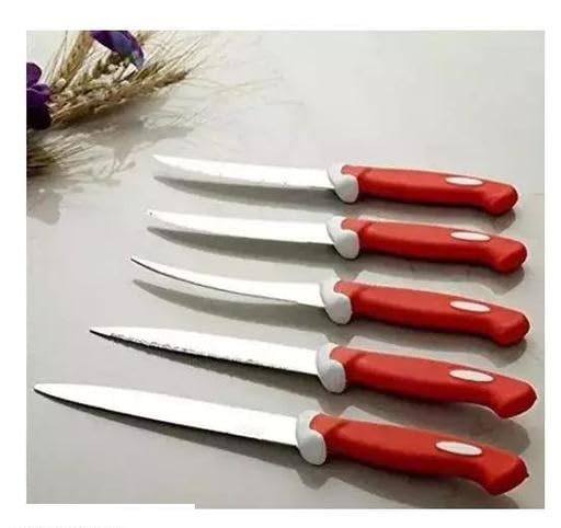 KP International New Multi Red 5 Pcs Knife Set Plastic, Steel Knife Set Utility Knife Chef Knife Steak Knife Boning Knife paring Knife (Pack of 5)5pcs Set Red chaku-4P_KP117