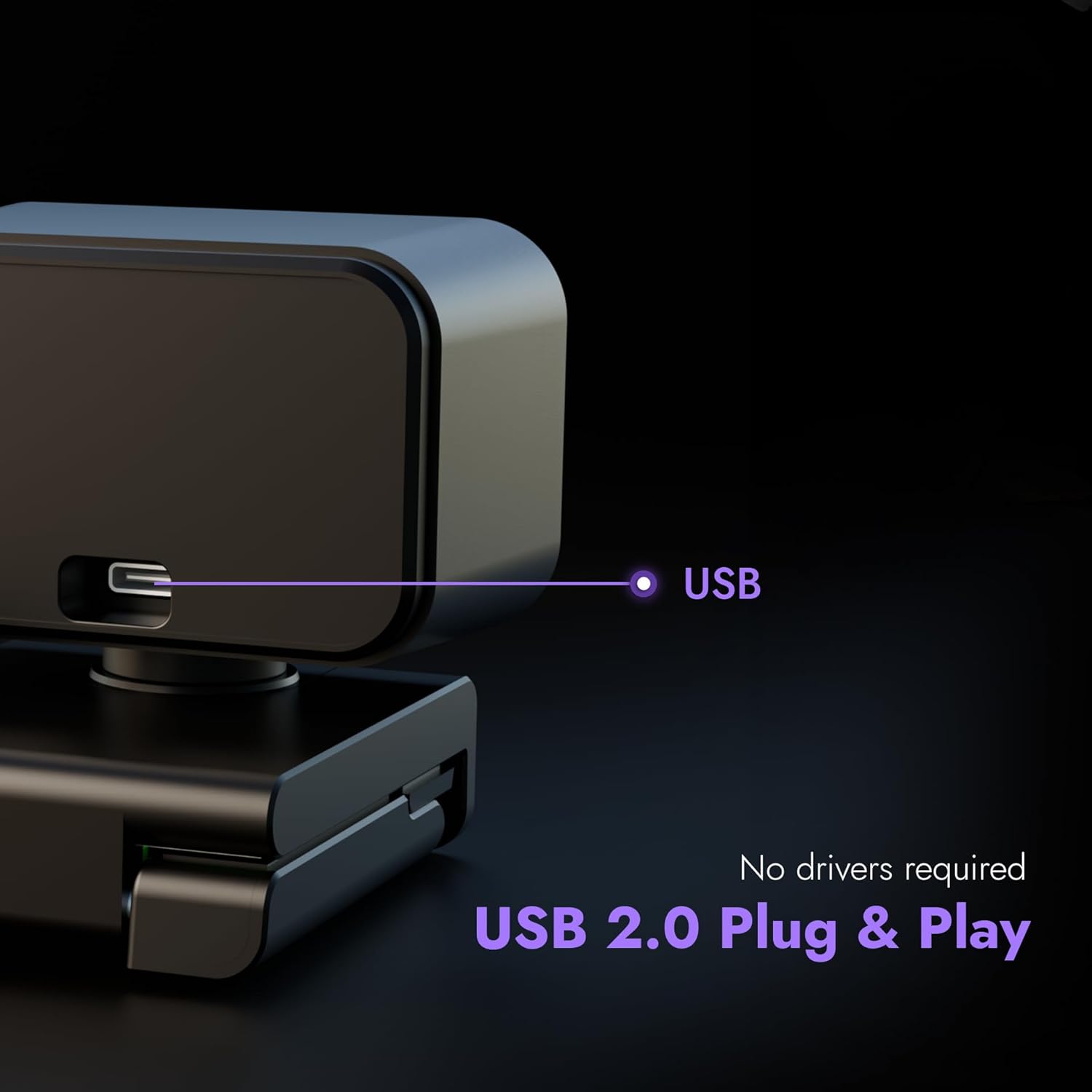 🔊 Dual Stereo Microphones – Built-in stereo mics capture clear, natural audio, making this webcam for laptop or PC ideal for professional calls and recordings.