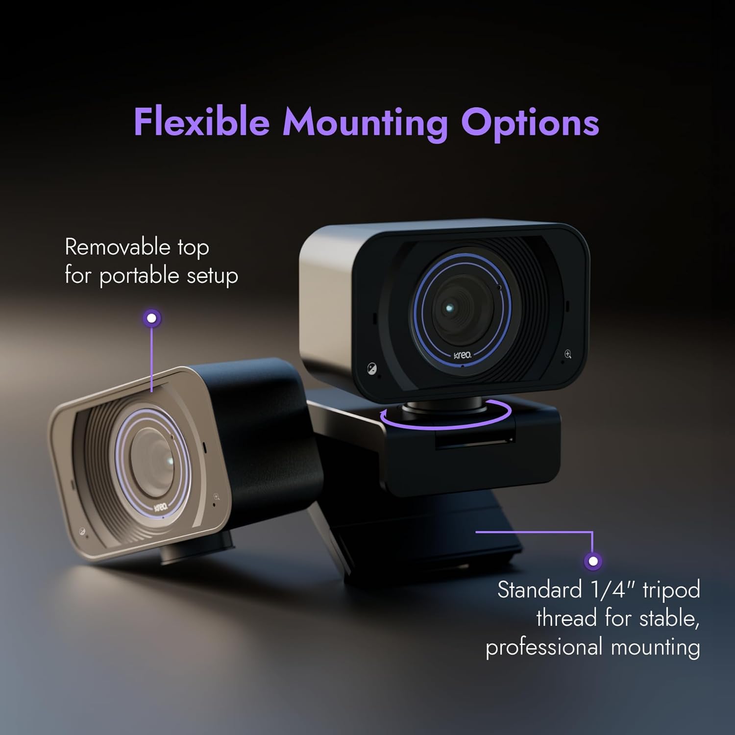 🪶 Flexible Mounting Options – Includes a removable base and standard 1/4″ tripod thread for stable, professional setup—perfect for creators upgrading from a basic Logitech webcam 1080p.