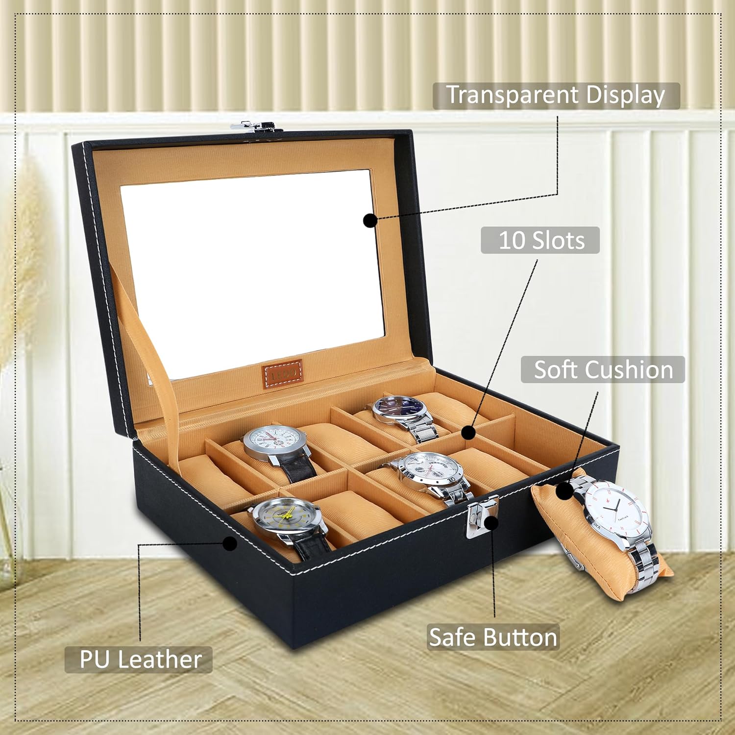 MULTI USE & SAFE- The watch storage case can be used for storing watches and jewellery both suitable for home use or commercial use & the storage case has an anti-rust lock, it is bright in color,smooth in hand it helps greatly to keep every single collection safe.