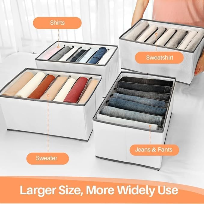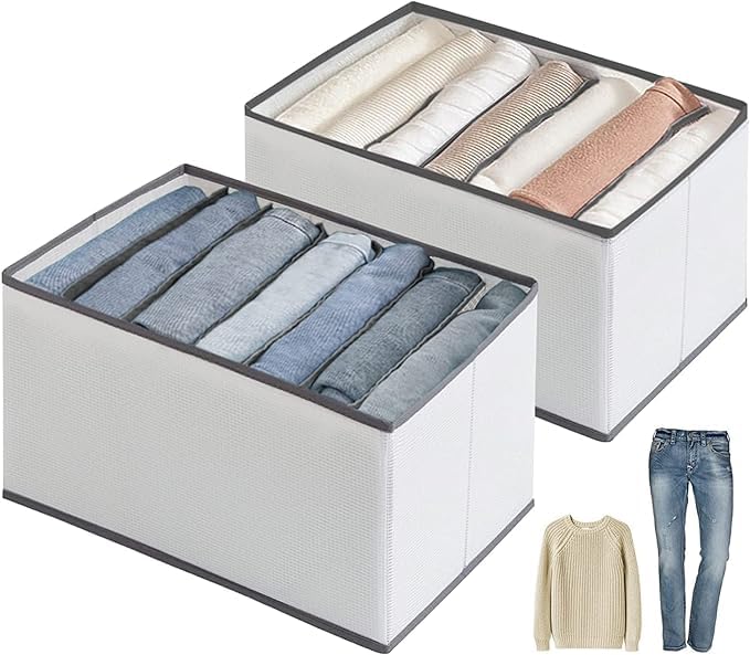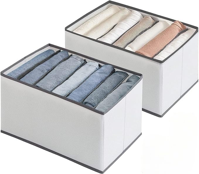 jeans storage for clothes offer you large storage room. It can be used as wardrobe organizer, bra organizer, etc, great storage solution for pants, T-shirts, sweaters, bras, scarves, short skirts and so on. The drawer organizer is suitable for your closet, wardrobe, big drawer, shelf, under your bed, etc.