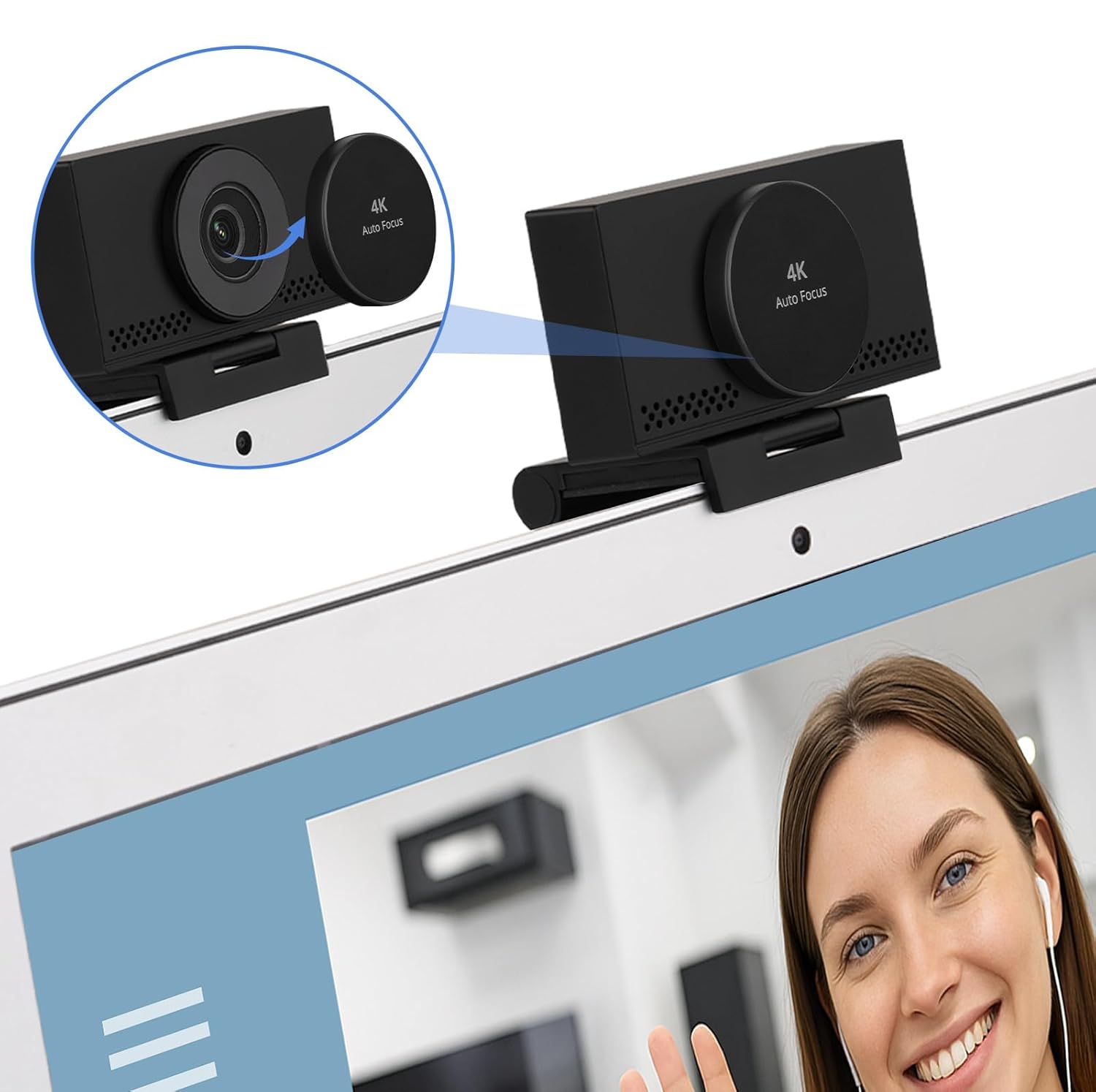MEGREZ 4K Webcam with Microphone & Privacy Cover, Webcam for PC, Adjustable FOV Computer Web Camera, Ultra HD USB Webcam for Streaming Video Call Conference and Online Lessons