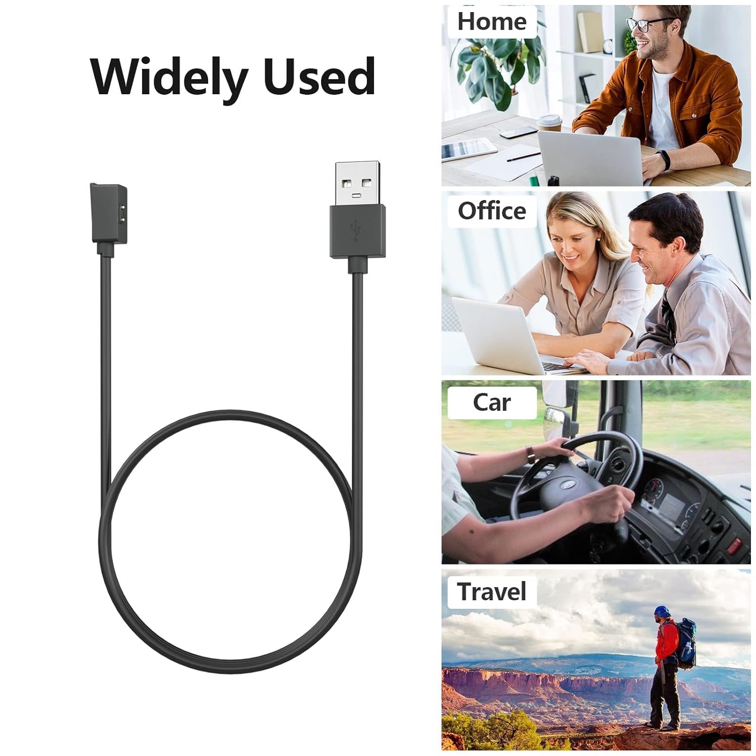 This magnetic USB charging cable connects your Smart Watch to a USB port on your computer, laptop, power bank, or a wall Power Adapter for convenient charging.