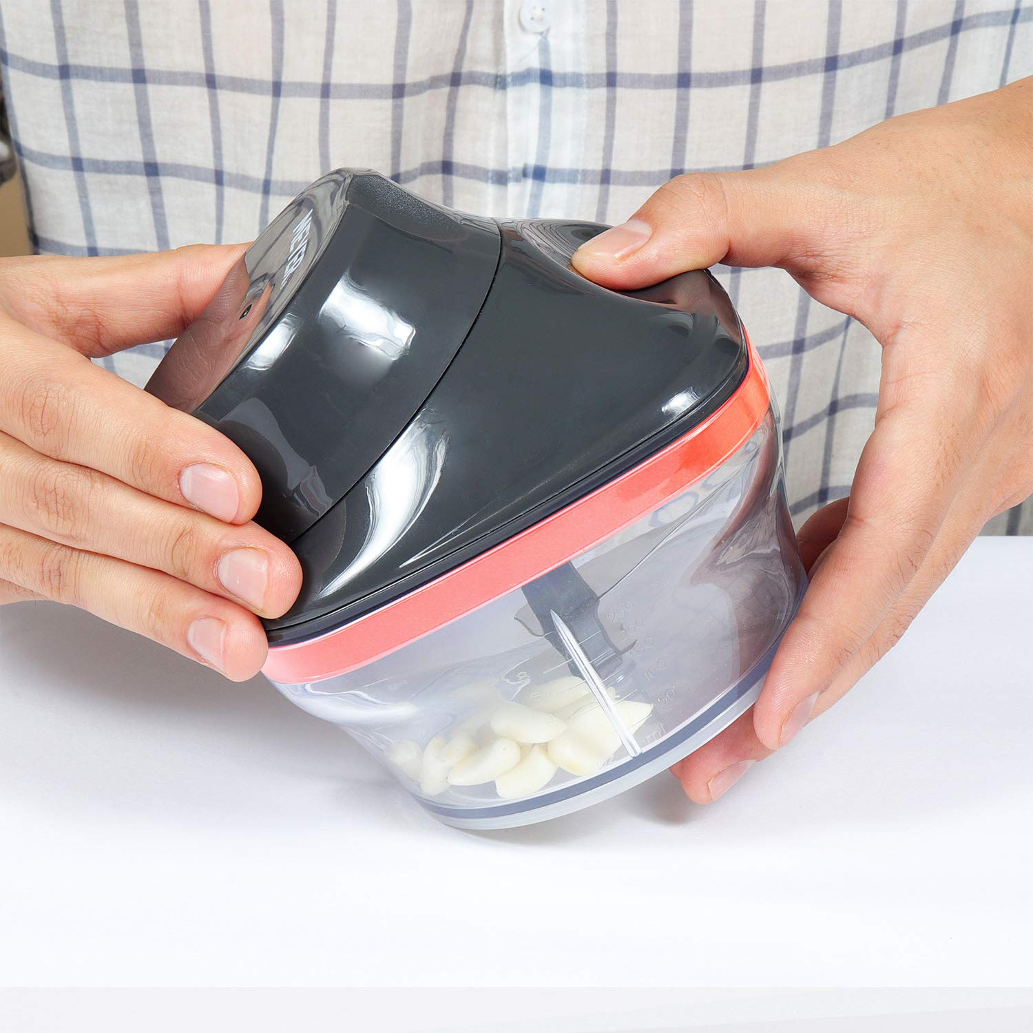 🥗 STRONG POWER BUT NO ELECTRIC: Although manual, the handheld chopper runs without electricity, and the blades give it plenty of power. Cut what you want into small pieces and put them in.