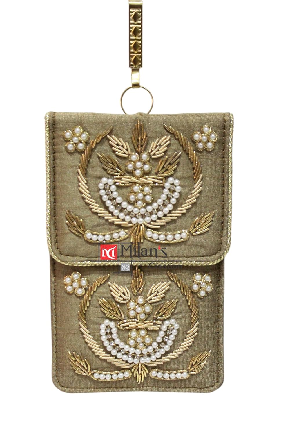 Explore our wide variety of elegant evening Potli bags, clutches, wedding collection handbags, and stylish purses designed for women and girls. Perfect for every occasion, these unique pieces effortlessly blend style and affordability. Being lightweight, these Mobile pouches can easily be carried like a small wallet on the waist or use like a sling. It has a long golden sling chain (removable) on the top for easy carrying. You can easily carry a big mobile phone and valuables at the backside by using zip pockets. Please note that as the product is handcrafted, there may be minor variations in size, color, shape, design, or embellishments.