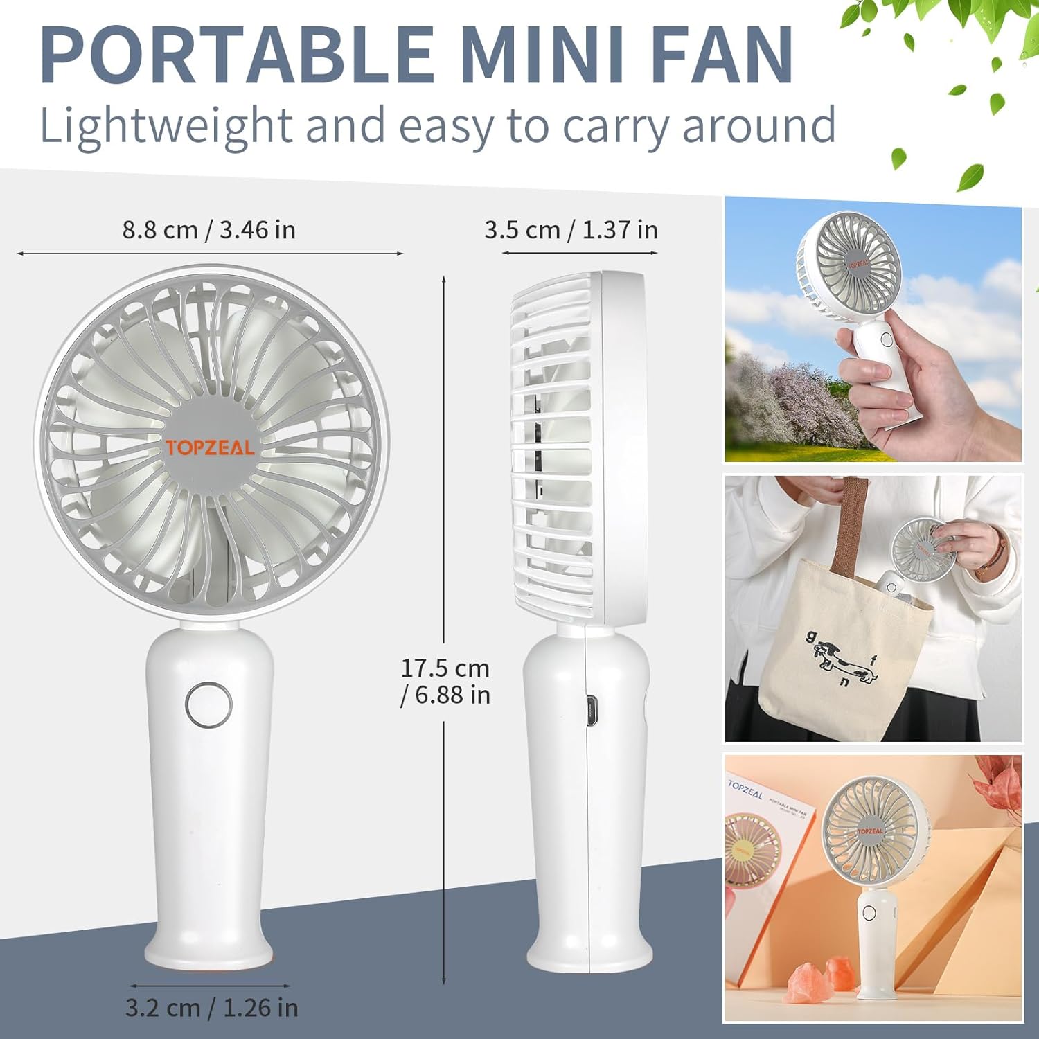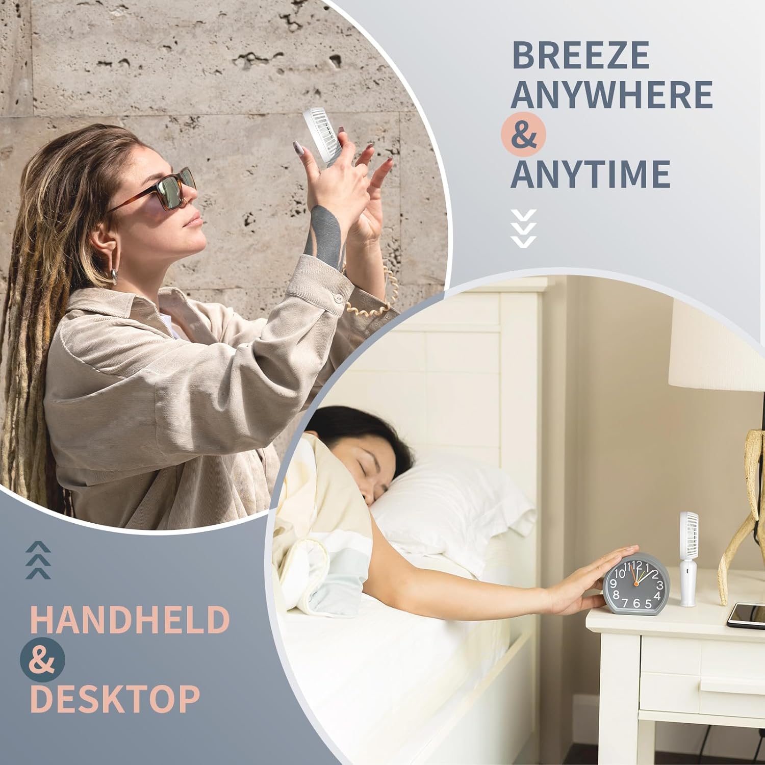 【Portable Mini Hand Fan and Table Fan】This portable fan serves as both a handheld fan and a desktop fan, offering convenience for various cooling needs. Whether you’re on the go or settled at your desk, this mini cooling fan provides the perfect cooling solution. When you’re on the move, simply hold this personal fan in your hand for personal cooling relief during outdoor activities or commuting. Once you’re back indoor, place this table fan on your desk to create a comfortable work environment