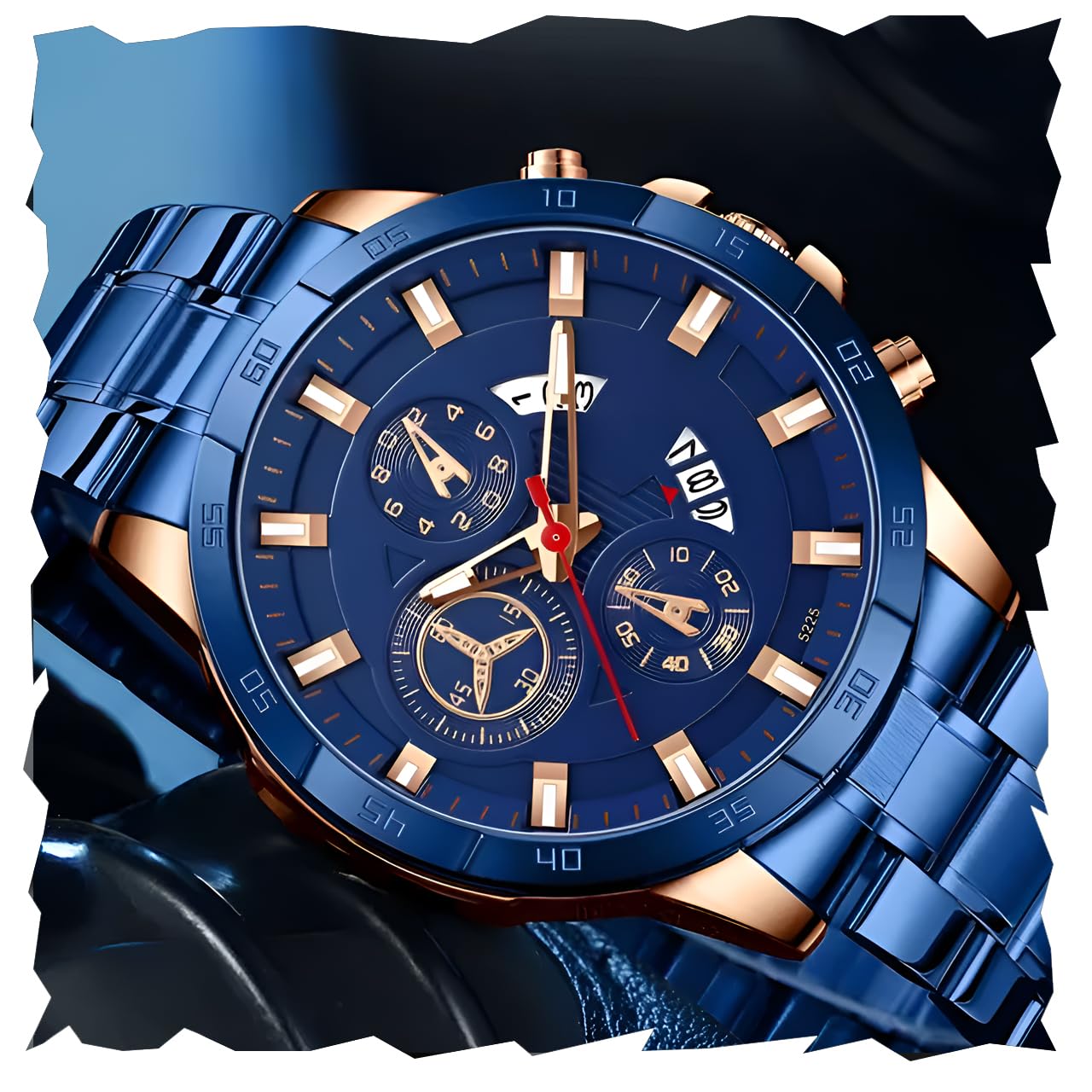 Elevate your style with this sophisticated analogue watch that seamlessly blends form and function. Crafted with meticulous attention to detail, it boasts a multicolour dial with date and calendar displays, ensuring you stay on top of your schedule with ease. The sleek metal case and bracelet exude a refined aesthetic, making it a versatile accessory for any occasion. With its water-resistant construction and precise timekeeping, this timepiece is a reliable companion for the modern man. Embrace timeless elegance and practicality with this exceptional watch that will undoubtedly elevate your ensemble. Due to lightning and photography effects Shining may look different in real This is Strap style analogue mens watches boys watches latest stylish watch which has round dial and is suitable for Men. It comes with the quartz movement type. This wrist watch is good to go for casual occasions. This wrist watch ensures better durability and better performance , Under price mens watches watch boys Boy Men branded latest stylish under 1000 500 200 300 100 automatic smart combo casi o digital analog calendar fast track below price g shoc fossi tita leather belt steel metal