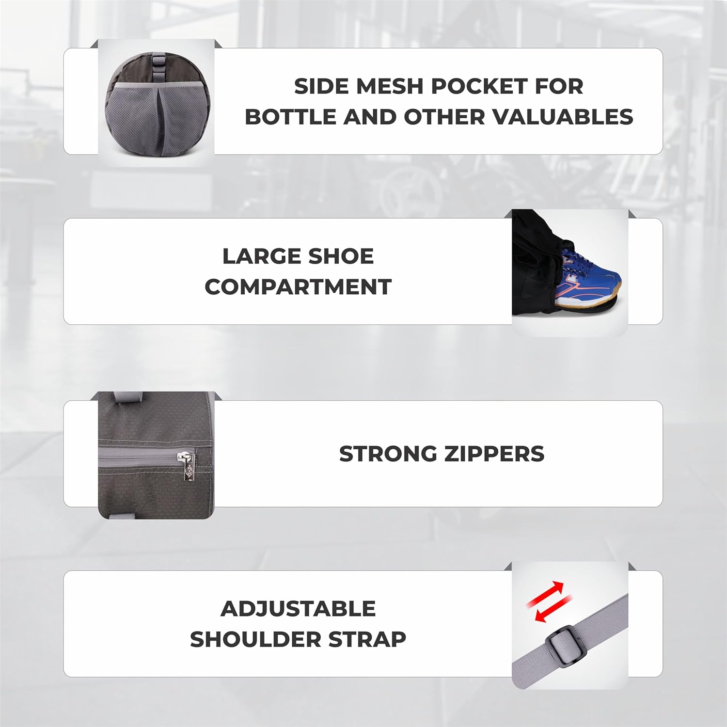NIVIA Beast Gym Bag-4 Polyester, Unisex Gym Bags, Shoulder Bag for Men & Women with Separate Shoes Compartment, Carry Gym Accessories,Sports & Travel Bag, Capacity- 21 litres