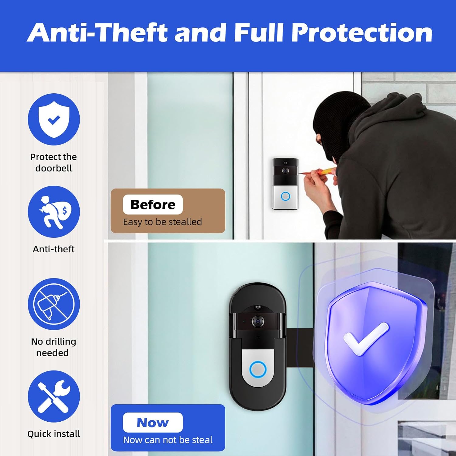 Anti-theft Design: This security doorbell camera mount is constructed of sturdy plastic and metal to fully protect your wireless video doorbell, effectively discourage theft or unauthorized removal, safeguarding your device and giving you peace of mind.