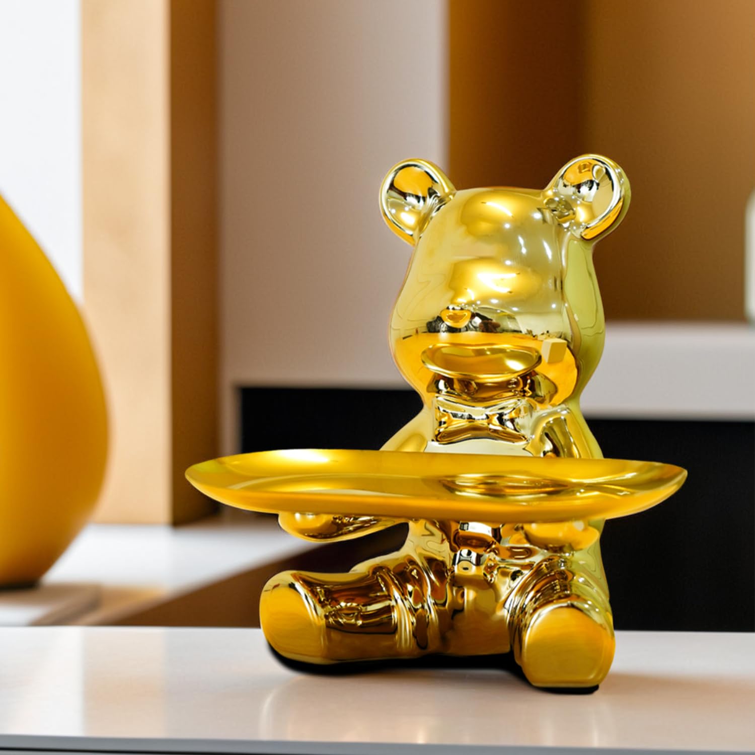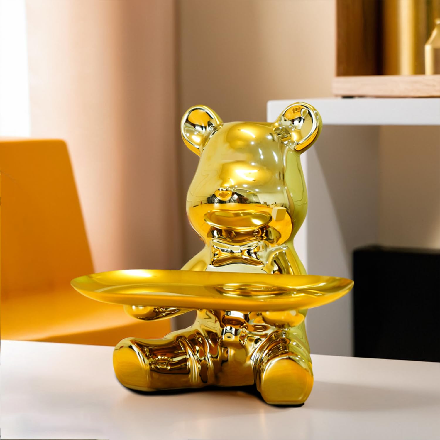 MULTI-PURPOSE FUNCTIONALITY: This teddy bear showpiece is perfect as a key bowl for entryway table or a key holder bowl to organize your essentials like wallets, phones, or jewelry. Its stylish design ensures functionality with a touch of charm.