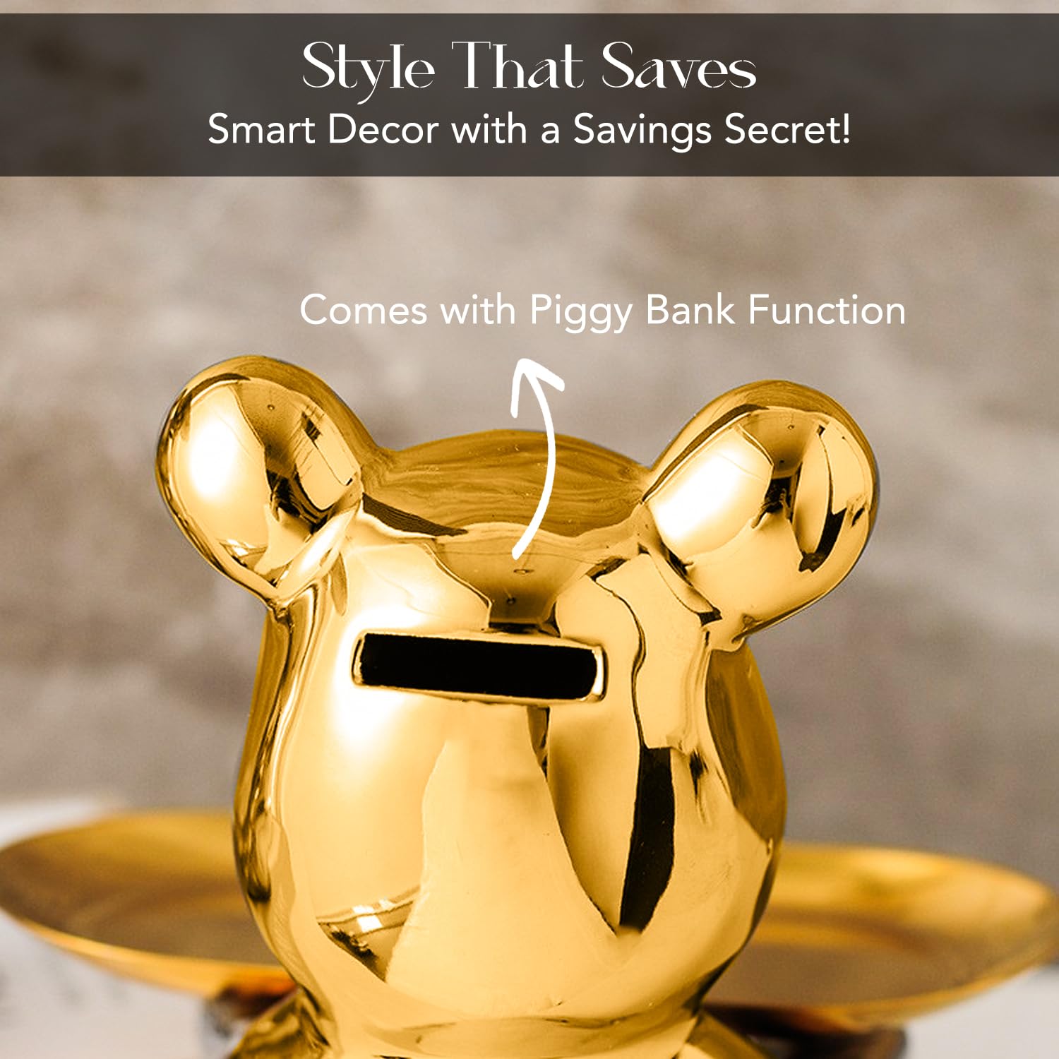 ADORABLE YET ELEGANT DESIGN: Featuring a unique teddy bear holding a tray and piggy bank, this showpiece for home decor is perfect for living rooms, bedrooms, or dining tables. Ideal for those looking for decorative pieces for living room or unique home decor.
