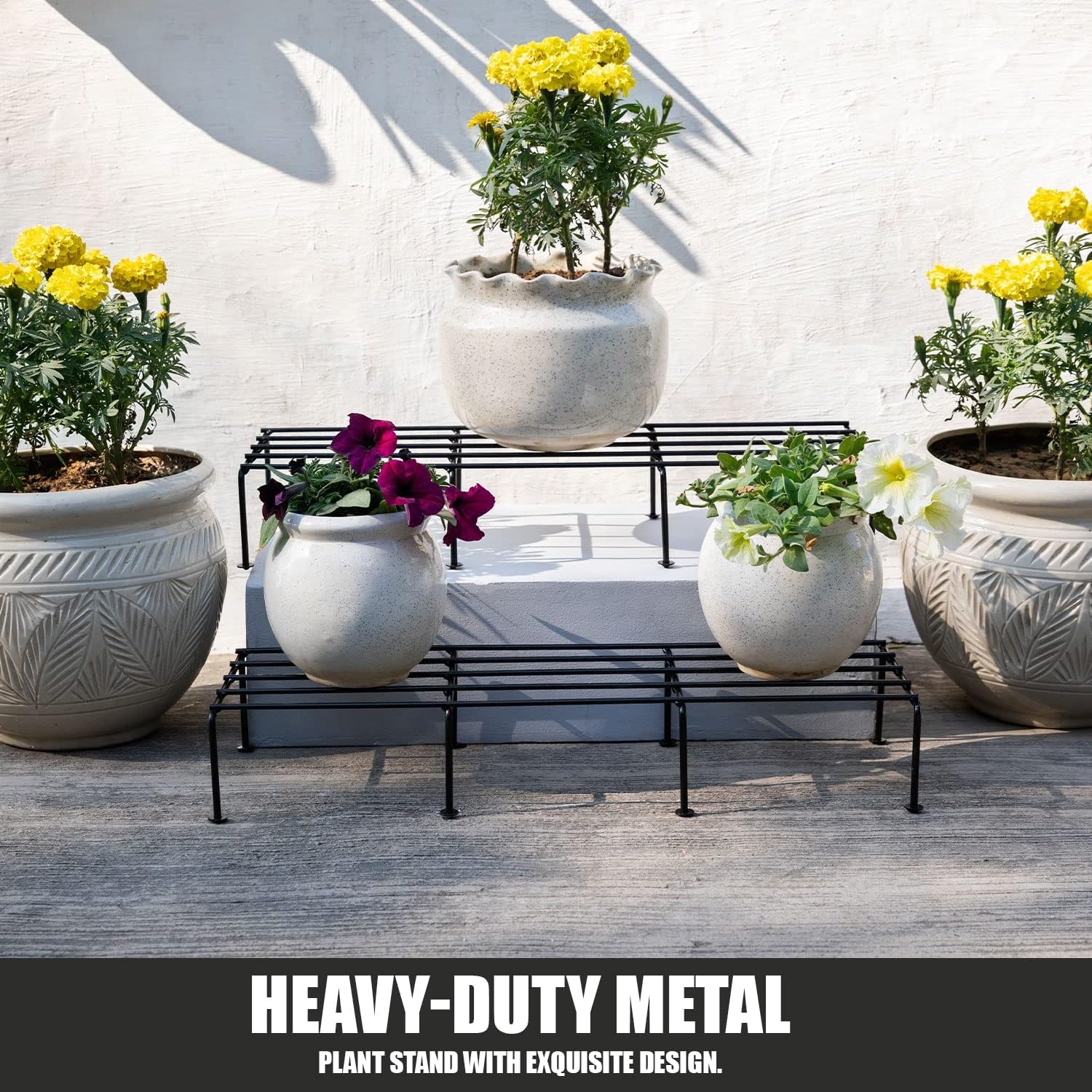 STURDY CONSTRUCTION: Crafted from even-quality materials, this plant stand is built to last. The sturdy metal frame ensures stability and durability, allowing it to withstand the weight of multiple plants without wobbling or tipping over. The stand is also treated with a weather-resistant coating, making it suitable for outdoor use and resistant to rust and corrosion.