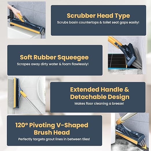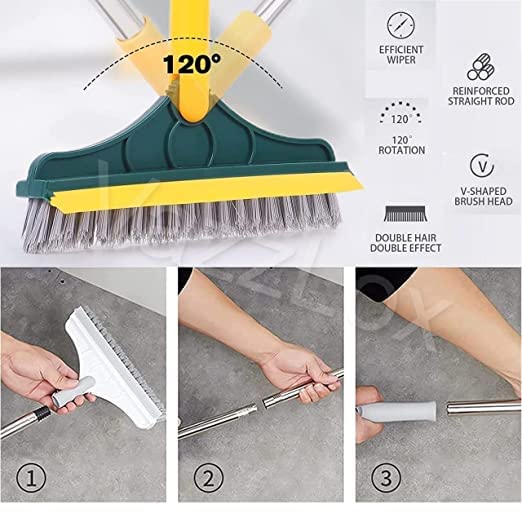2-in-1 set: The tile cleaning brush not only has a brush head, but also has a scraper. Whenever you use the brush head, use the scraper to gently scrape the floor, and the floor will be clean immediately. V-SHAPED HARD BRISTLE: Our tile cleaner brush is designed in V-shape stiff bristles, it is special for cleaning those hard-to reach corners, cross grout, gaps and crevices in bathroom and kitchen. The tile grout brush fits easily to the grout lines(corners, tight spots, etc.), cross crevices, high and low gaps, corners, etc. and effectively remove the stains stubborn dirt, dirty water, and dust on the ground or wall without damage the wall. 120° ROTATING REMOVABLE HEAD: Bathroom floor cleaning brush can rotate 120 degrees at the pivot joint to provide you with the best angle for all deep cleaning jobs. You can detach the long handle to scrub the sink gap and window bottom rail. Bathroom cleaning accessories HIGH-QUALITY MATERIAL: The tile cleaning brush is made of high-quality aluminum + PP wire + PP three materials, one thing is multi-purpose, cleaning is effortless, and it can be used in bathrooms, living rooms, outdoors, and balconies. EASE OF USE: The tile cleaning brush can be used with a long handle, or the brush head can be removed separately for cleaning window gaps, for a variety of purposes.