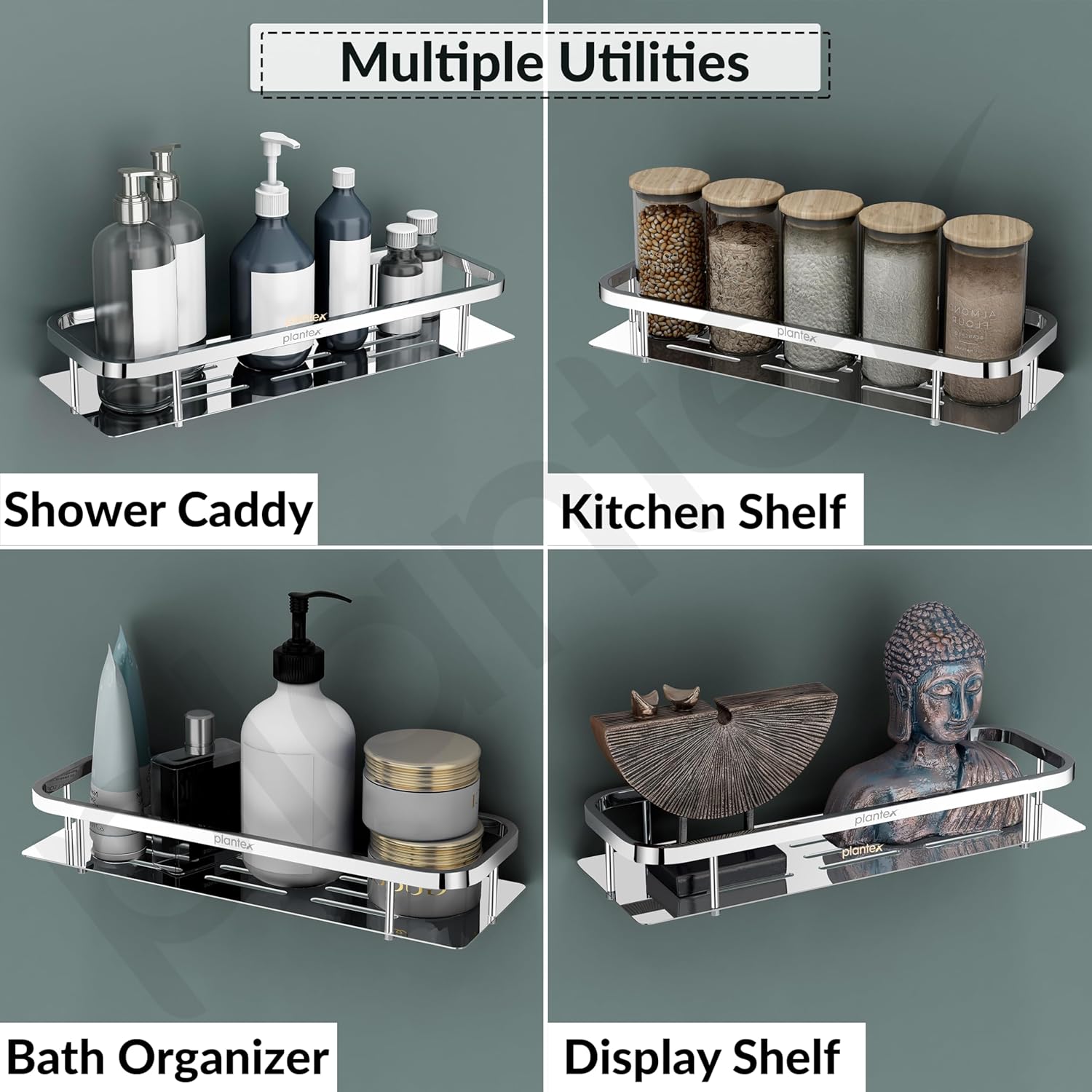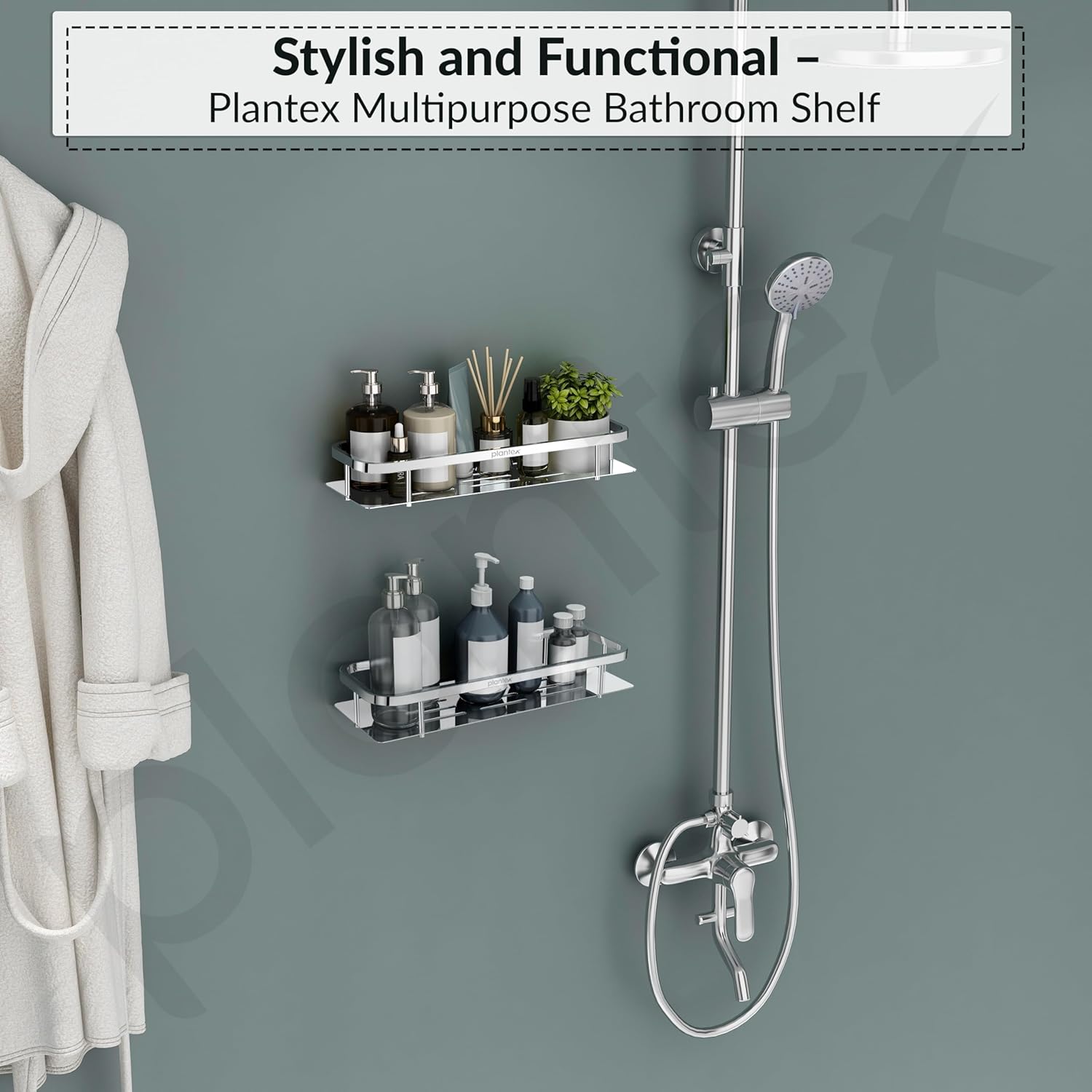 𝐃𝐮𝐫𝐚𝐛𝐥𝐞 𝐌𝐚𝐭𝐞𝐫𝐢𝐚𝐥: The Plantex multipurpose bathroom shelf is crafted from 304-grade stainless steel with an extra nickel-chrome mirror finish for enhanced rust and corrosion resistance.
