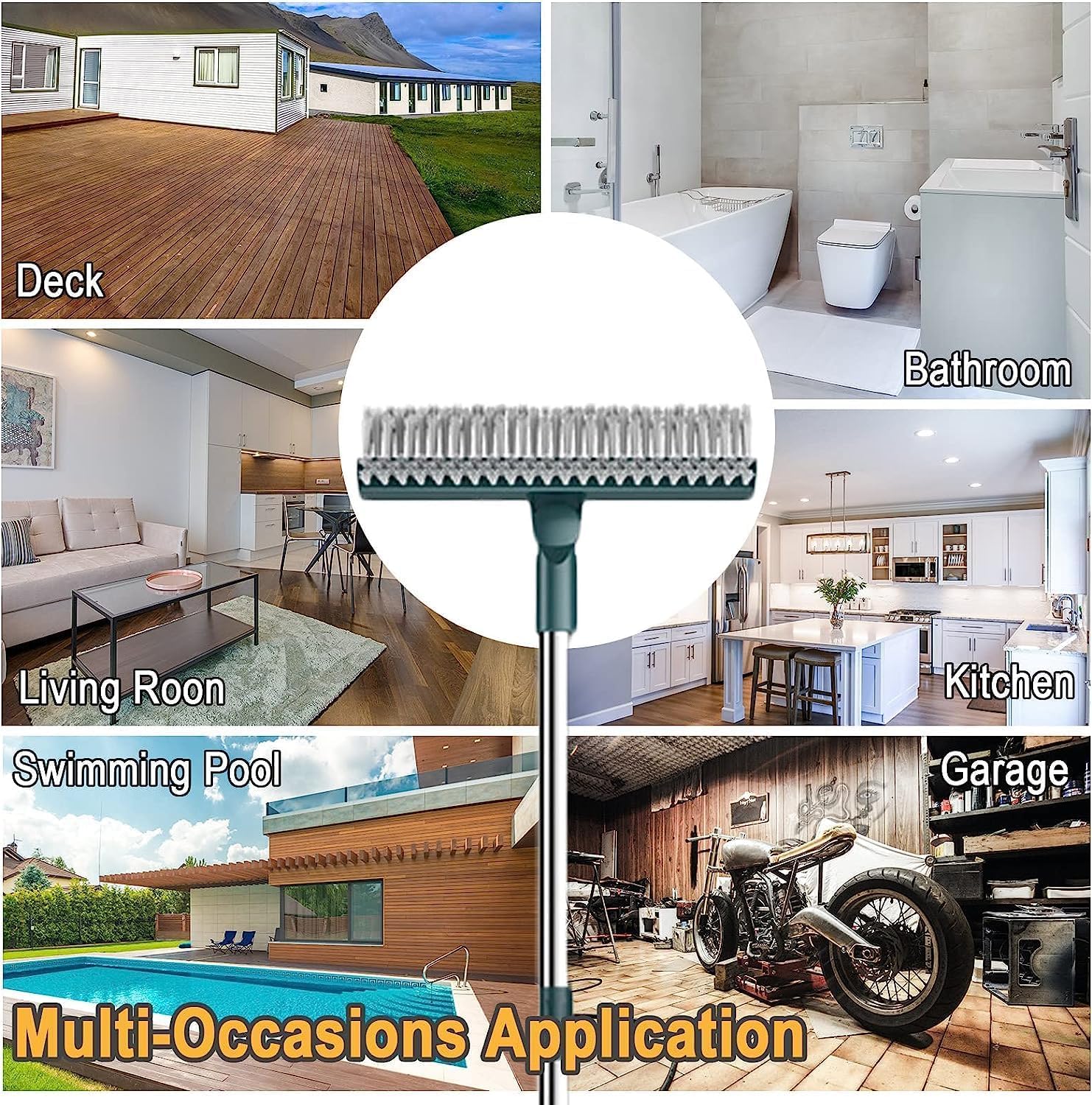 3 IN 1 FLOOR SCRUBBER WITH WIPER: Bathroom cleaning brush comes in 3 in 1 function that is floor scrub brush and rubber scrape. Carpet cleaner‘s stiff bristles is used for scrubbing the floor, after brushing the floor, you can easily scrape off the sewage with the rubber squeegee.