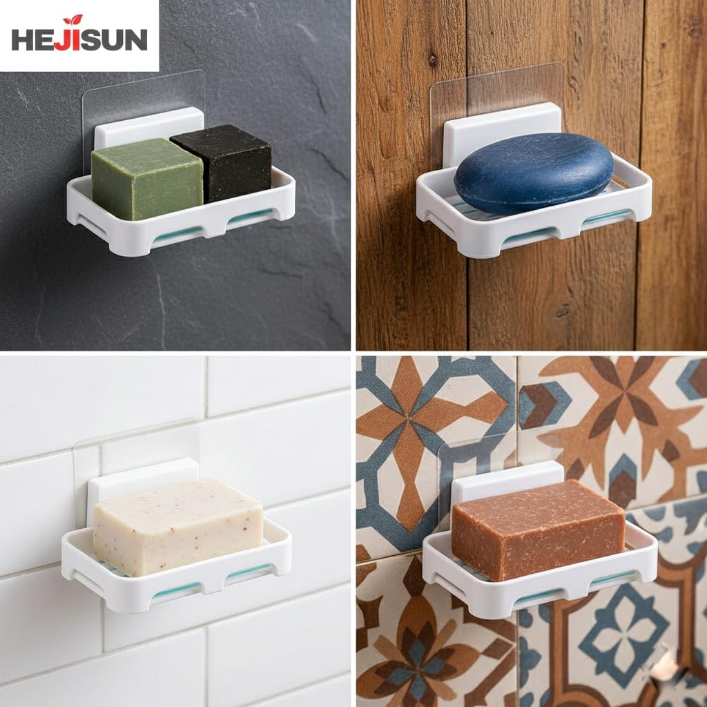 HEJISUN soap Holder for Bathroom, case, Caddy Organizer Shelf Without Drilling, Wall Mounted Self Draining Soap Dish Hanging Waterproof