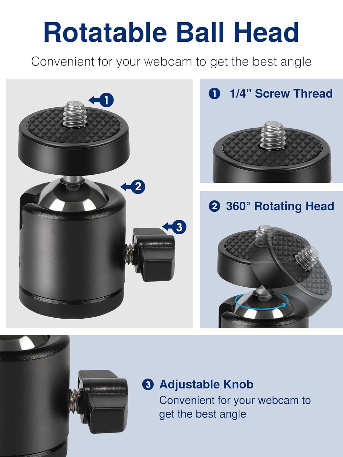 Versatile: Suitable for Logitech Webcam C920 C920S C922x C615 BRIO C930e C922 with standard 1/4’’ screw hole. The ideal choice for home, video recording, broadcasting and podcast.