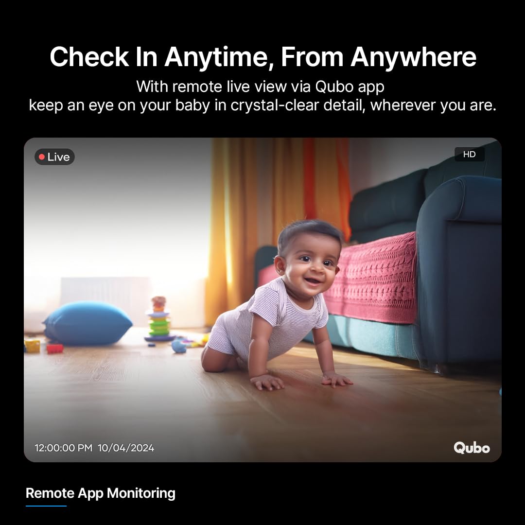 【Qubo NightPulse Vision for Nighttime Clarity】High-performance IR LEDs ensure clear visibility even in total darkness, perfect for keeping watch while your baby sleeps.
