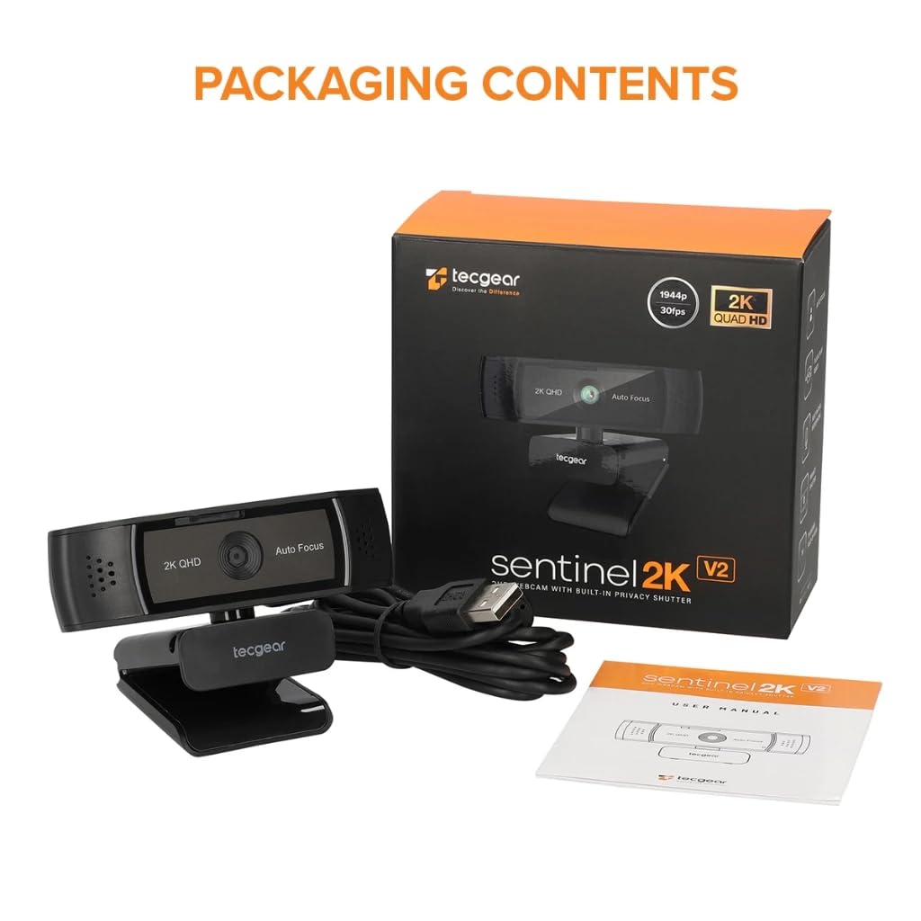The TECGEAR Sentinel 2Kv2 QHD Webcam offers exceptional video quality with its QHD 2592×1944 resolution, delivering clear, professional-grade visuals at up to 30FPS. Featuring a built-in privacy filter, simply slide the shutter to protect your privacy when the webcam is not in use. Its 78° wide viewing angle ensures a broader perspective, making it perfect for video calls, live streaming, and conferencing. With a 360-degree swivel and tripod-ready mounting base, enjoy flexible mounting options for any setup. The built-in microphone eliminates the need for extra audio equipment, while universal compatibility ensures easy use across major systems and platforms. Perfect for gaming, work, and beyond.