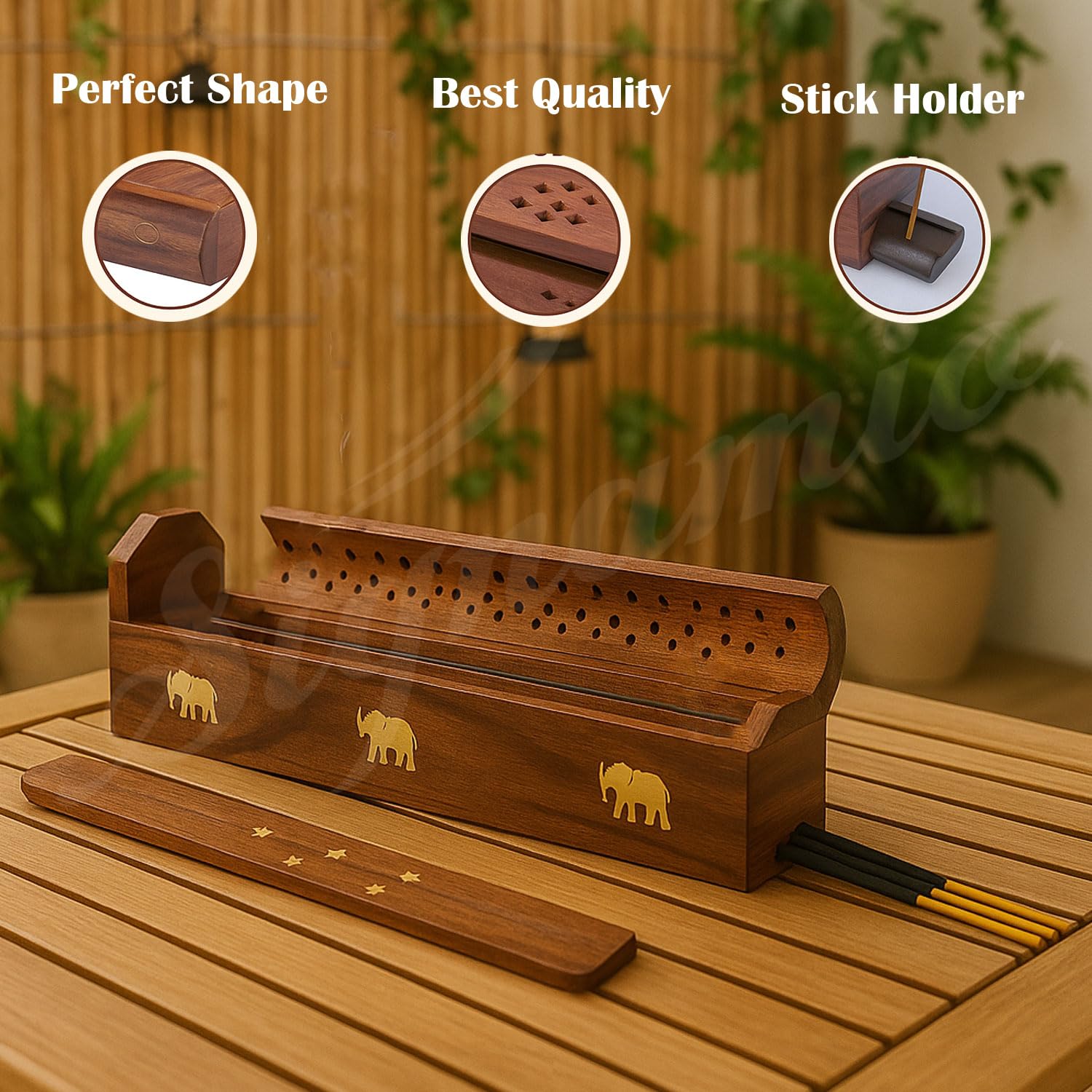 Elevate your spiritual rituals and enrich your home ambiance with the Premium Signamio Wooden Sambrani Dhoop & Incense Stick Holder Set a must-have for your pooja room decoration. Augmenting the sanctity of your pooja items for the pooja room.