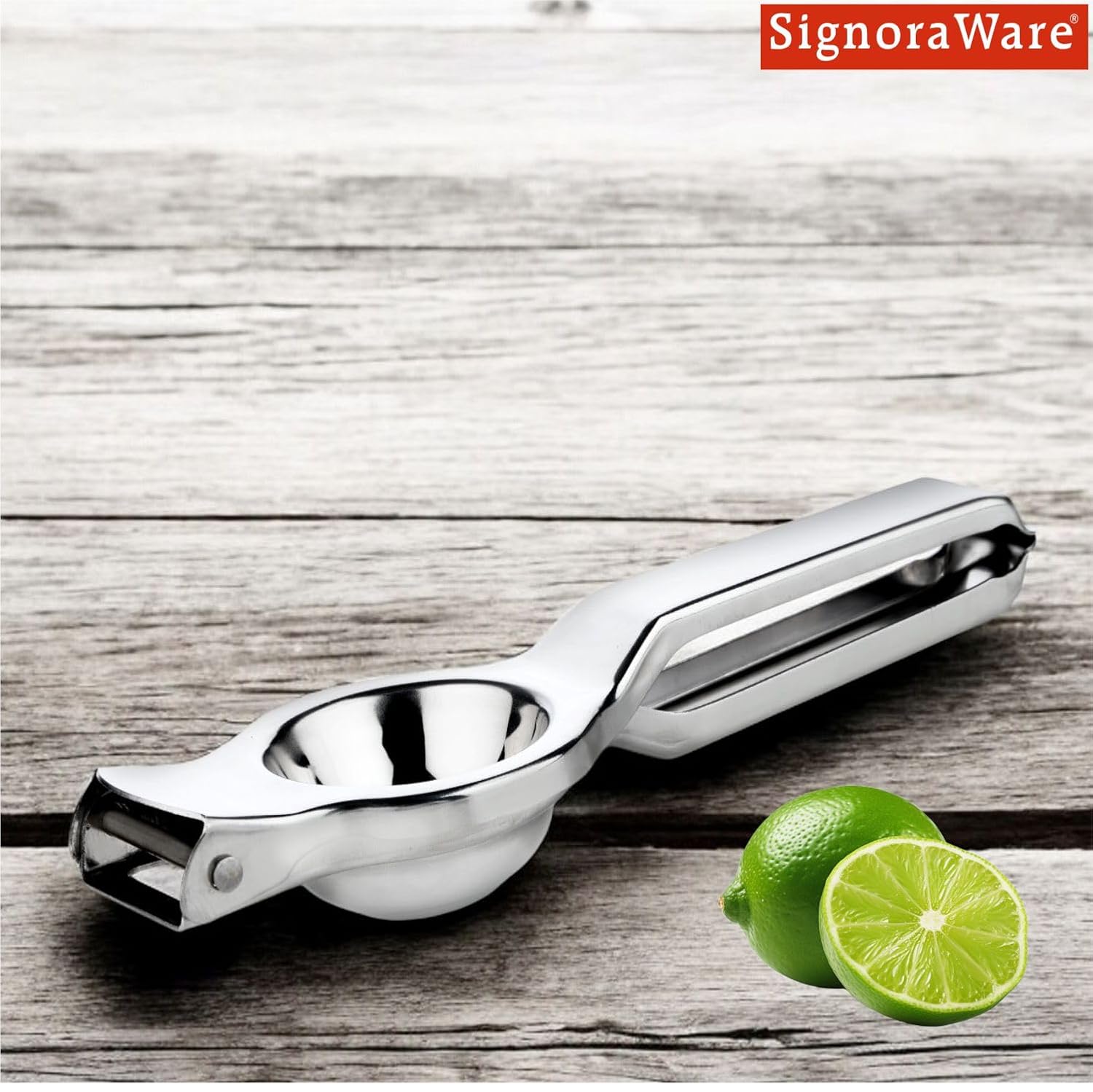 Material Details: Dimension : 21cm x 6.5cm x 4cm | The Signoraware 2-in-1 Lemon Squeezer with Bottle Opener is made from high Quality Stainless steel, it is a versatile kitchen tool that combines the functionality of a lemon squeezer and a bottle opener in one.
