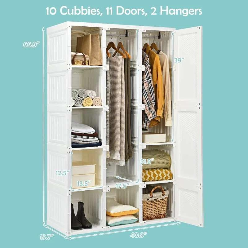 Featuring a clever design with 10 spacious cubbies and two sturdy hanging rods, you can easily organize your folded items and hang shirts, dresses, and more. The lightweight yet durable fabric construction ensures easy setup and portability, making it perfect for apartments, dorms, or any space needing a storage boost.