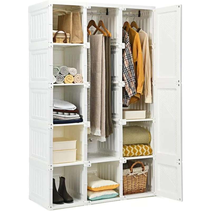 Versatile Storage: Organize folded clothes in cubbies and hang dresses and shirts on sturdy rods.