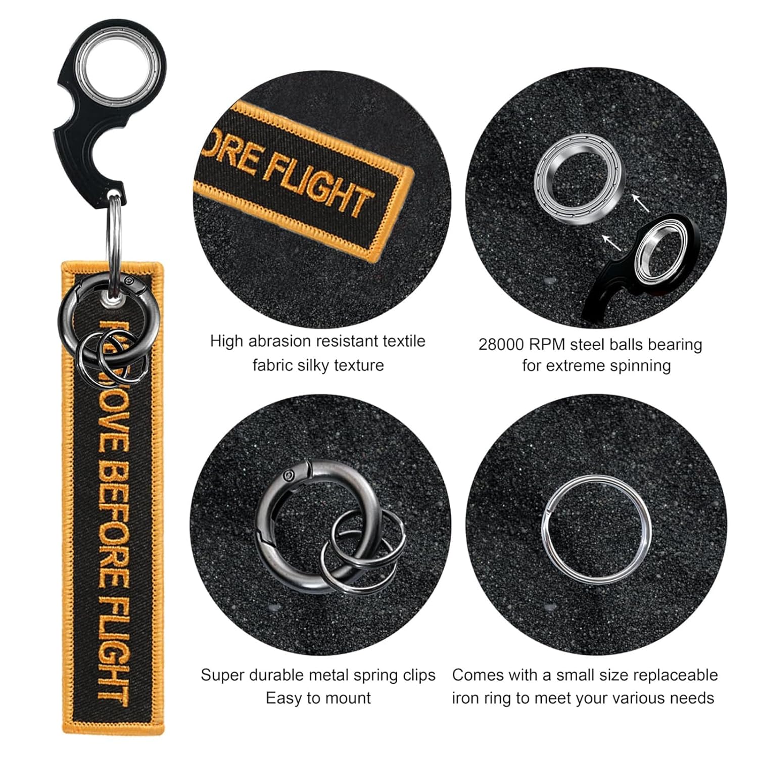1. Multifunctional Keychain Combo: Includes a smooth-spinning spinner keychain, an embroidered keychain and a durable spring coil ring (3.5cm) for organizing keys or accessories.