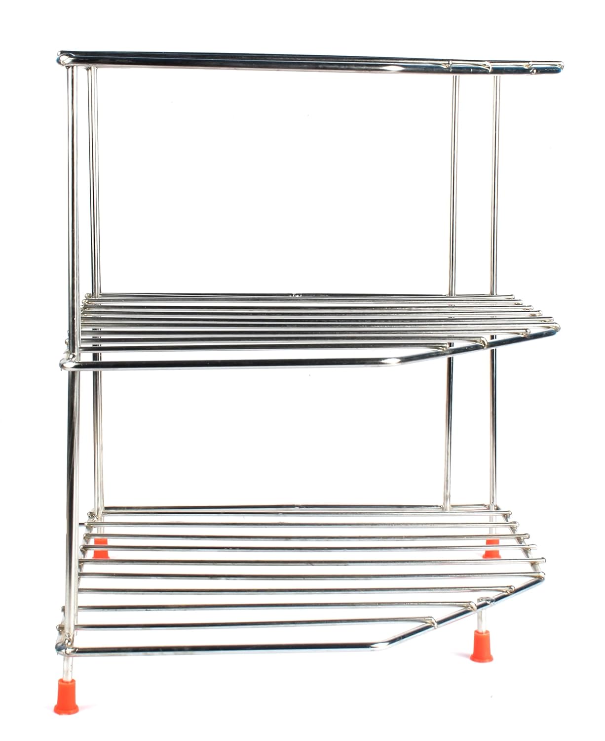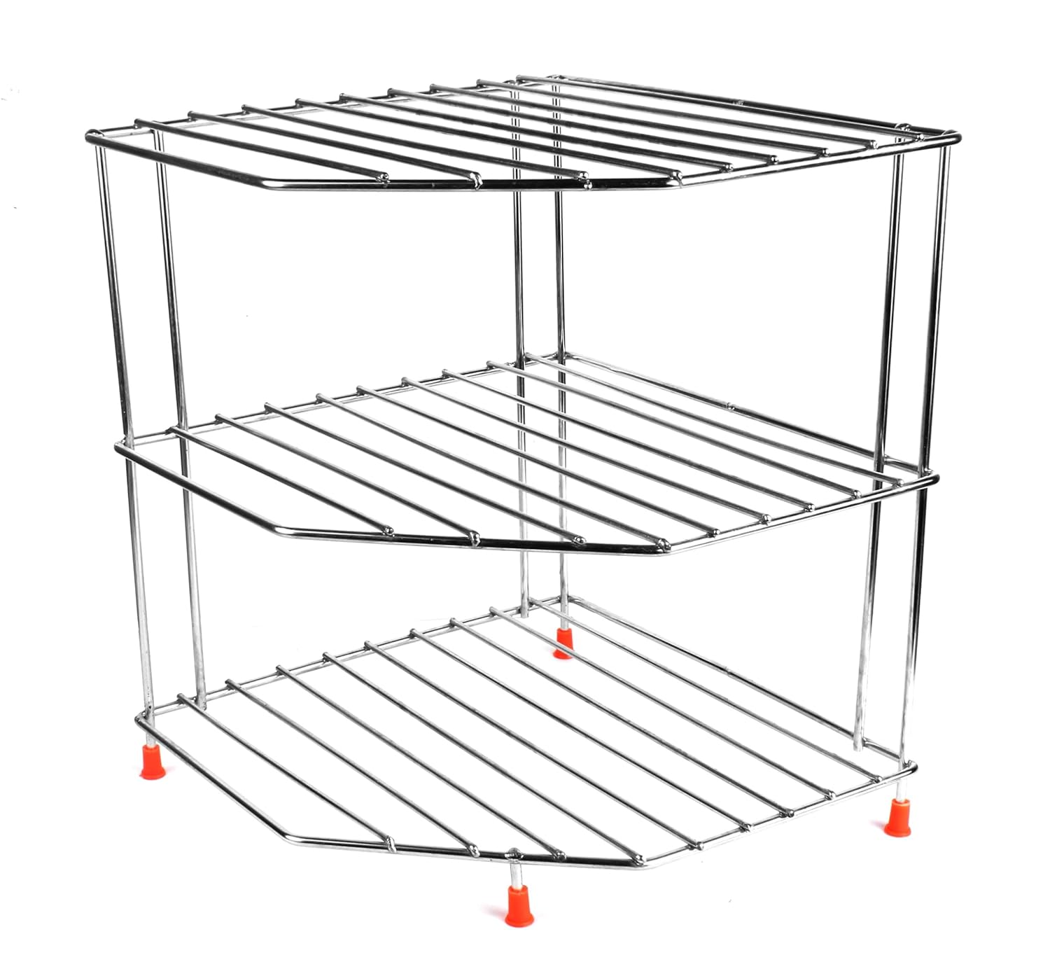 Customers find the storage rack to be of good quality and worth its price, appreciating its space-saving design and sufficient storage capacity, particularly for small bottles. The rack is useful in kitchen corners, though opinions about its sturdiness are mixed, with some finding it sturdy while others say it’s not fully sturdy enough. The size receives mixed feedback, with several customers noting it’s too small to hold most jars. The appearance also gets mixed reviews, with some finding it feeble-looking.