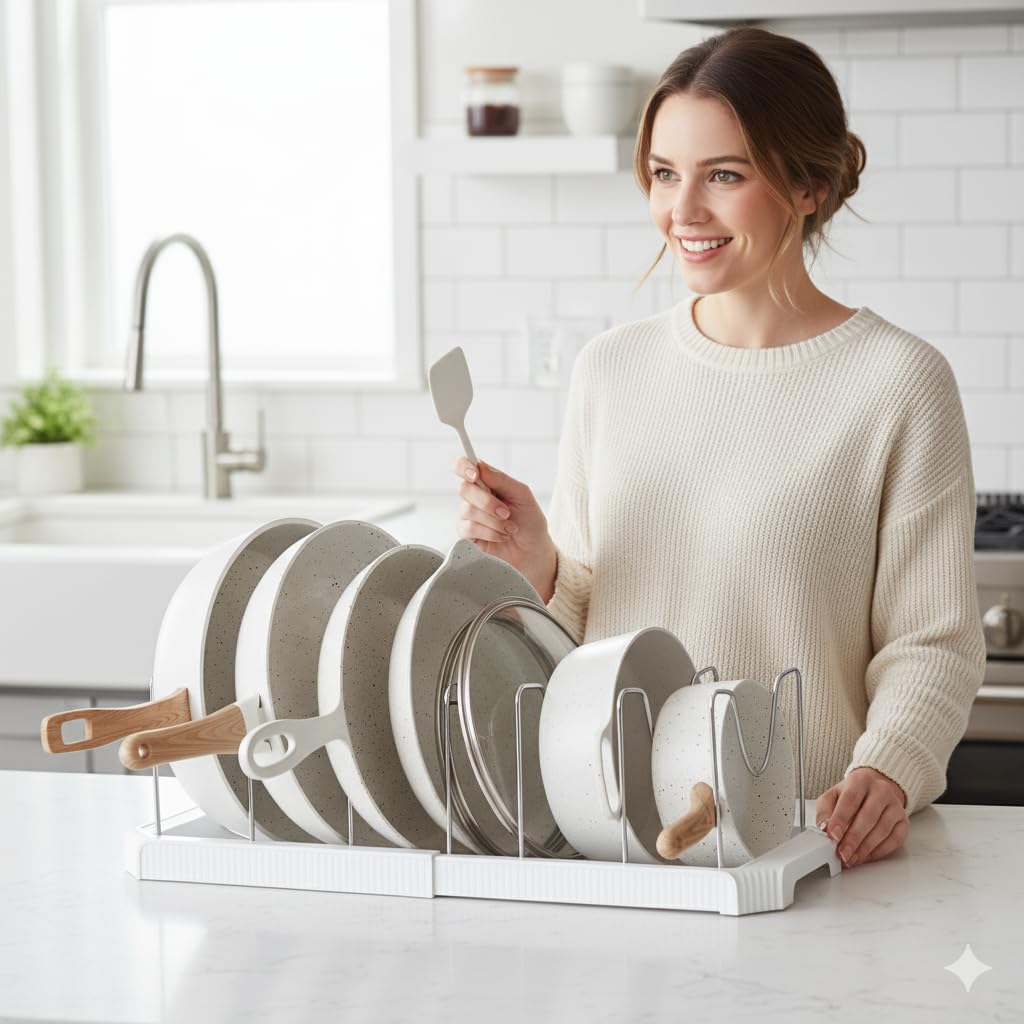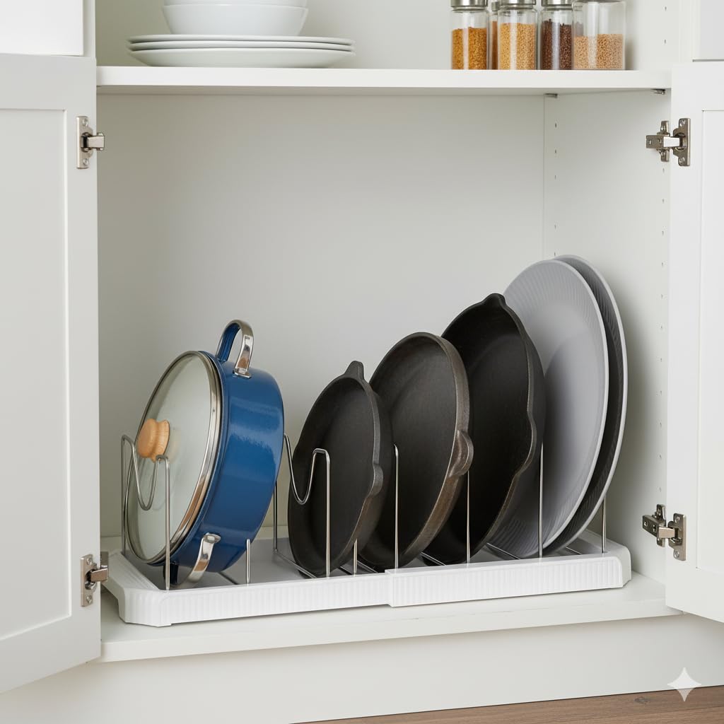 This versatile organizer accommodates a wide range of cookware, from baking sheets to skillets, fitting seamlessly under-sink or in cabinet spaces to streamline your kitchen.
