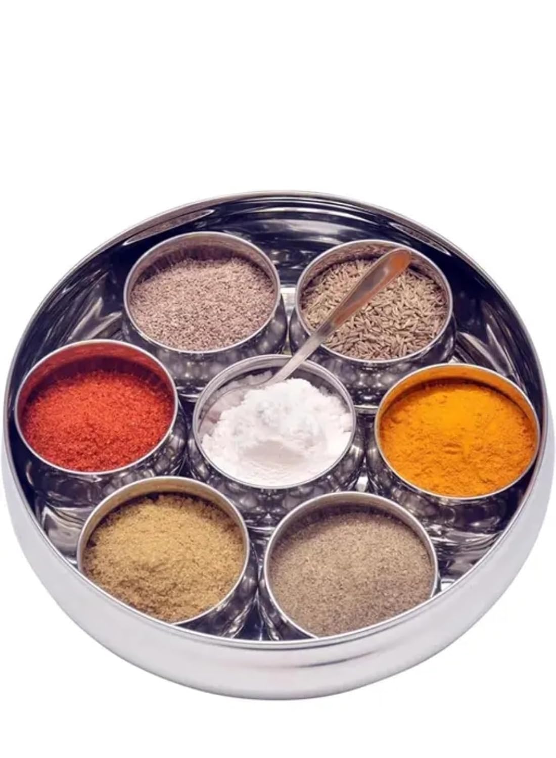 Included Accessory: Typically includes a small, dedicated stainless steel spoon for easy scooping and measuring of the spices from the individual compartments.