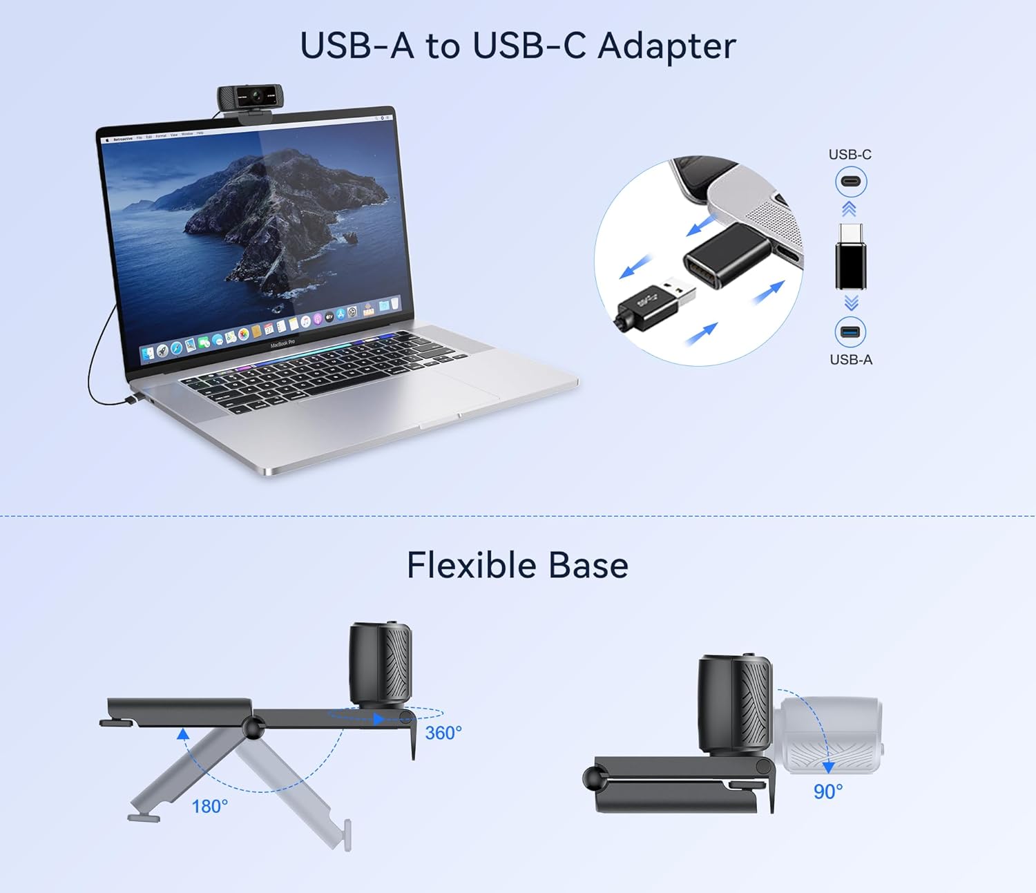 【Universal Compatibility & Flexible Mounting】 Works everywhere! Fully compatible with Windows 7/10/11, MacOS 10.14+, Linux,popular streaming/calling apps. The computer camera easily mounts on monitors, laptops, or tripods (1/4″ thread) thanks to its 360° swivel and 90° tilt. The ultimate external webcam for PC, Macbook, or laptop.