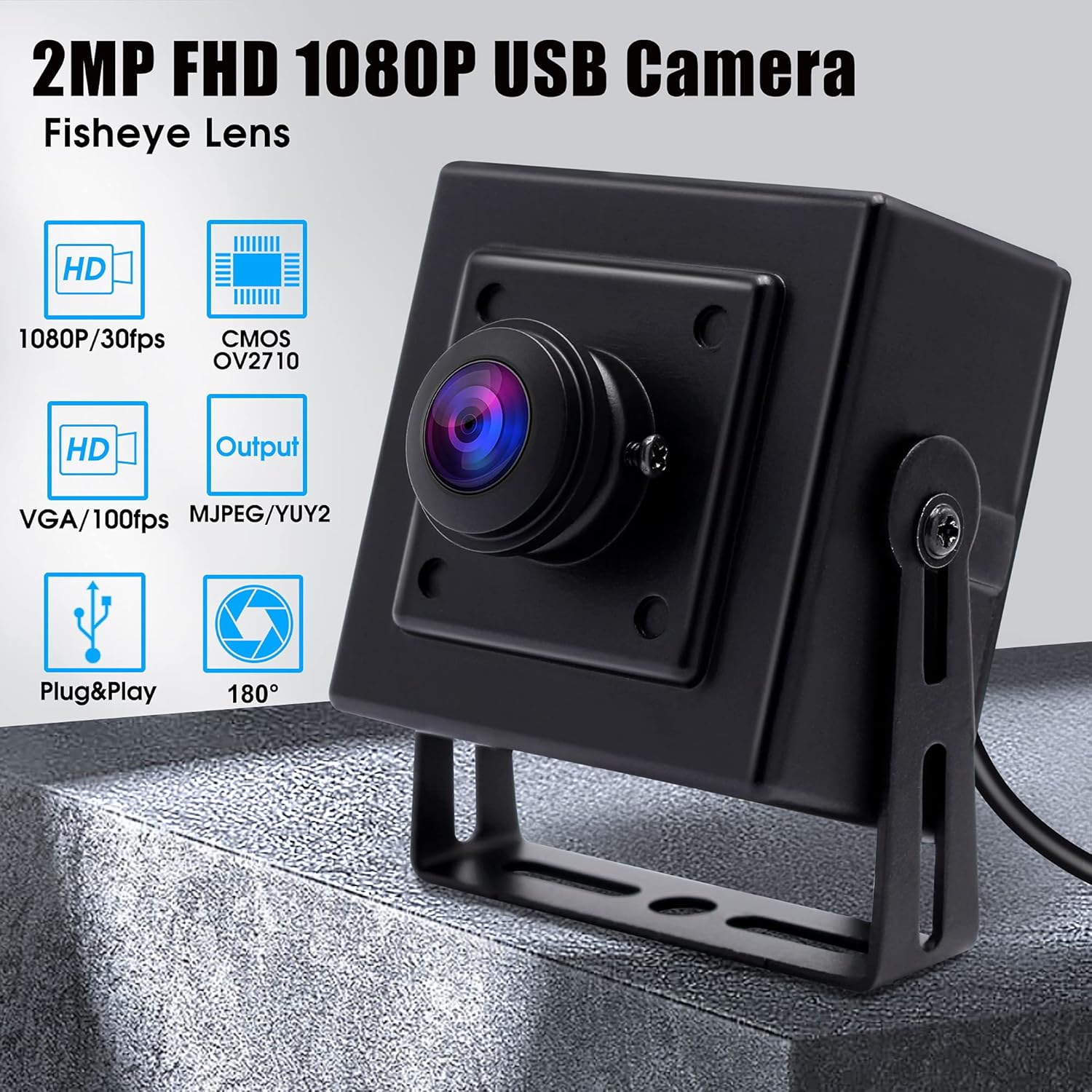 SVPRO 1080P USB Webcam is a high frame rate camera, mini fisheye camera with aluminum housing and swivel metal bracket for easy installation, for desktop or wall mount use. USB port, UVC compatible.
