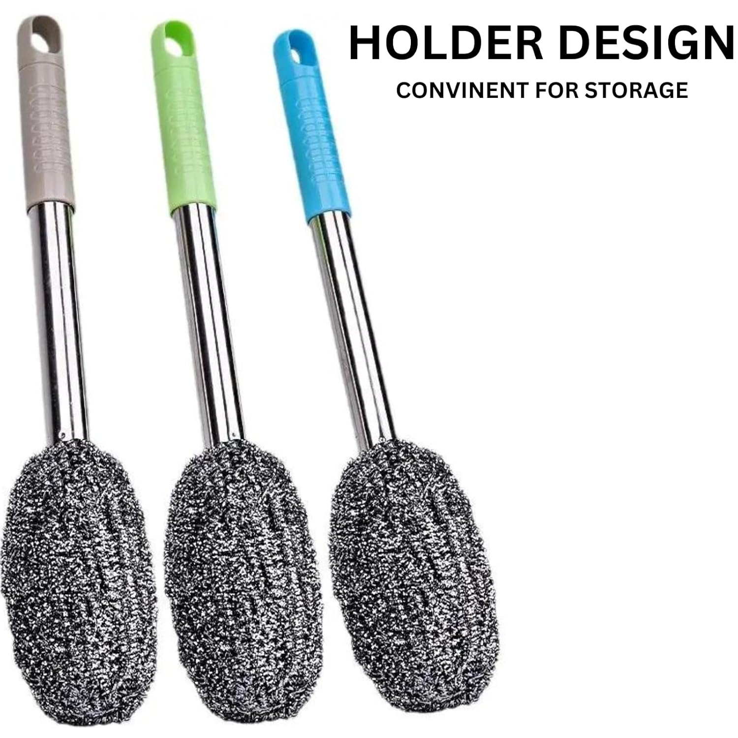 Convenient to Use: Cleaning is made easy with this stainless steel scrubber with a handle. It protects against grease and stains and keeps your hands away from oils and cleaning fluids. The ergonomic design and long handle reduce hand fatigue and make scrubbing effortless.