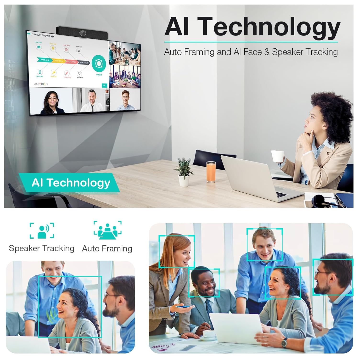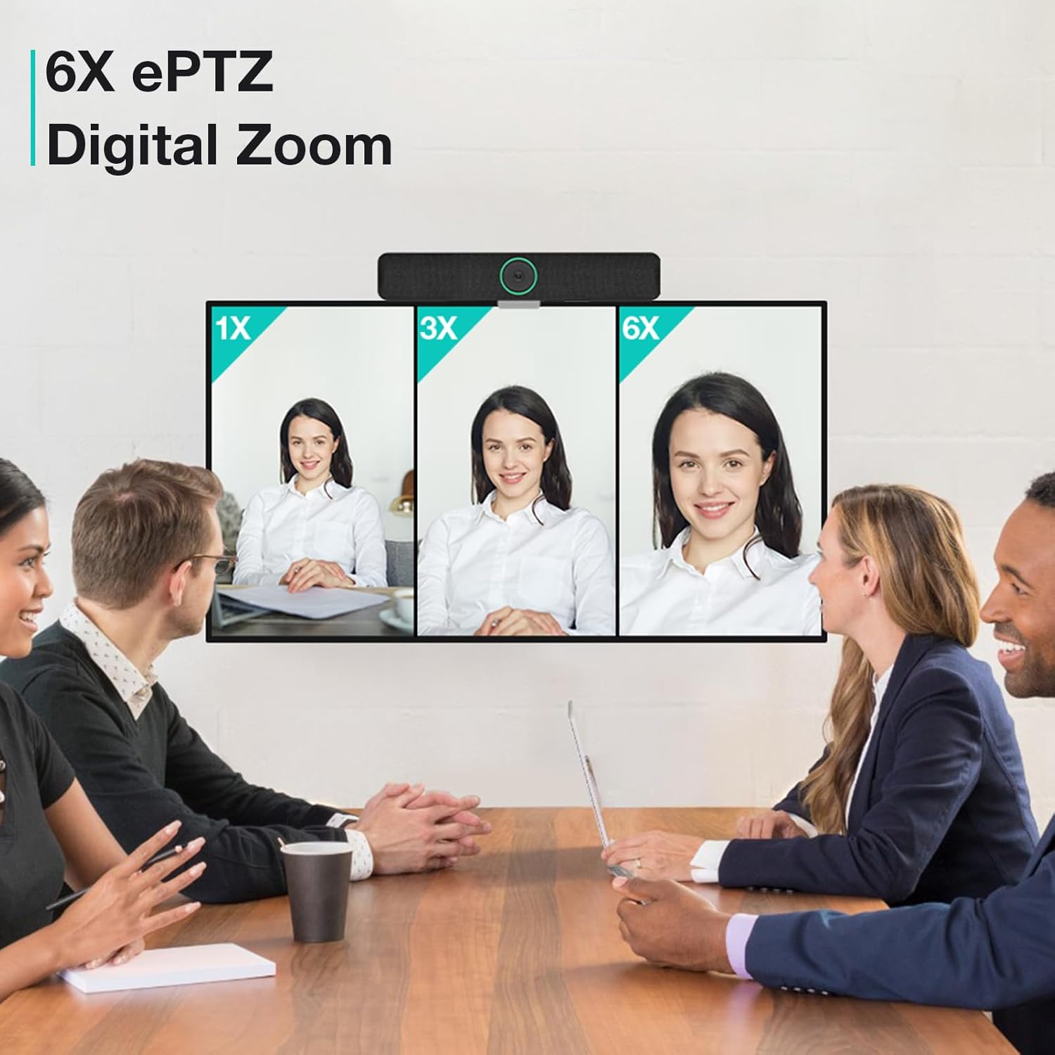 【Functions for Multiple Scenarios】TB5 has a variety of functions to meet the needs of various conference scenarios, Auto Framing & Focus, AI Face & Speaker Tracking, 6X ePtz Zoom, Expansion microphone(Optional) that supports longer distance pickup.
