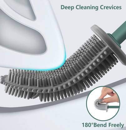 he toilet brush head is waterproof, eliminating the hassle of dripping. The selected materials ensure quality and durability. The handle and the premium silicone toilet brush head has excellent durability. Save cleaning time: ergonomic handles facilitate cleaning and reduce cleaning time. Comfortable non-slip anti-skid handle, package with stable and breathable mounting base, well ventilated. The simple and beautiful design suits your bathroom. Material: ABS + TPR Size: 30 × 8 × 4 cm Toilet brush set: silicone toilet brushes made of high-quality ABS + silicone brush, non-stick coating, no dirt can stick to the bristles and thus provide a germ-free zone. The simple and beautiful design is tailored to your bathroom. The bracket is detachable and with grooves that allow water and sewage to evaporate quickly, allows the toilet brush to dry and drain more easily. There is a cover where the brush head meets the handle, when you put the brush on the holder, it can block the internal smell. Not only for the toilet, sink, washbasin, and bathtubs Flat head toilet brush made of TPR suitable for all-ceramic plastic glass surfaces. Choose it to give you a clean and tidy home.