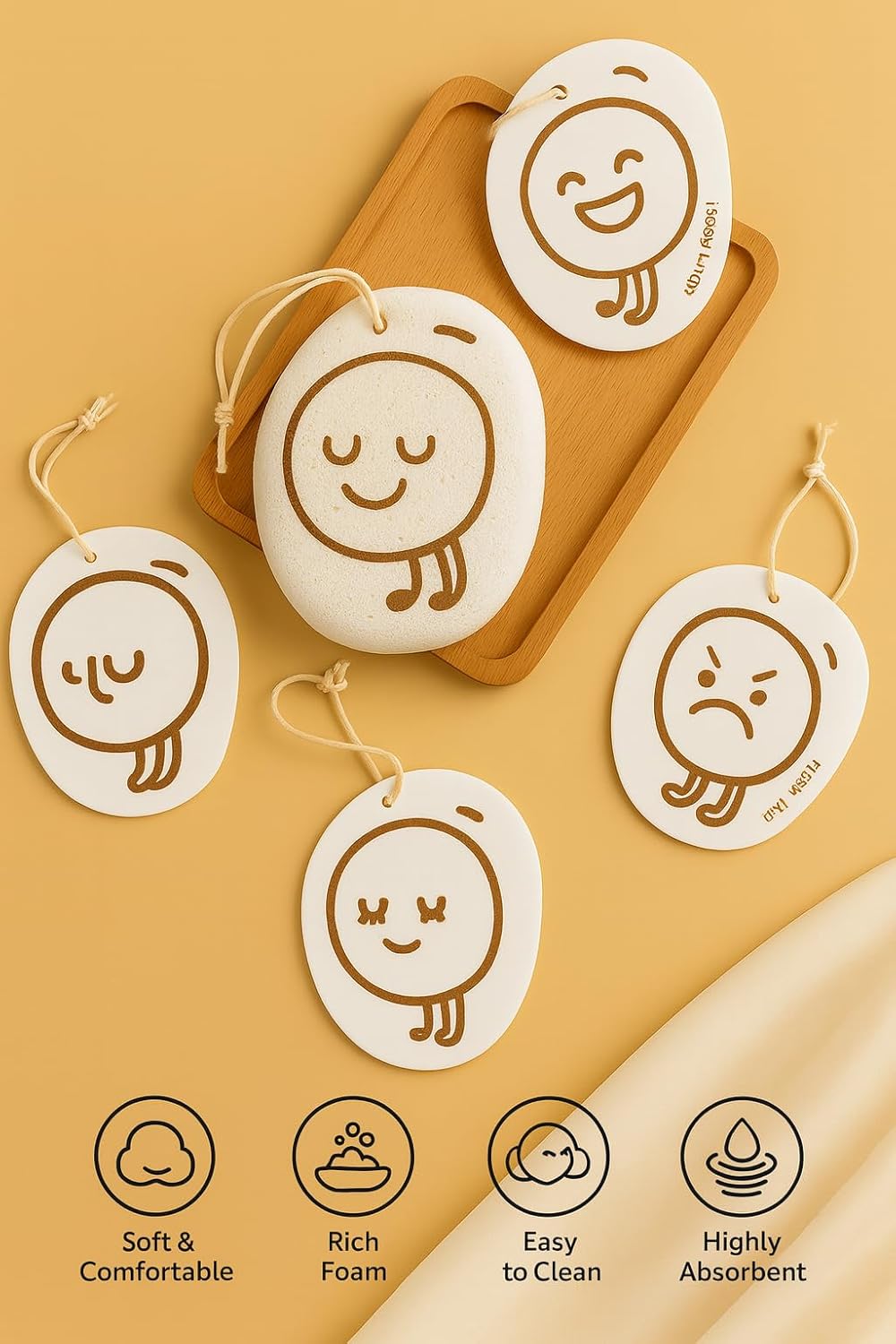 ✨ Eco-Friendly & Natural: Made from 100% compressed wood pulp, these sponges are biodegradable, sustainable, and plastic-free.